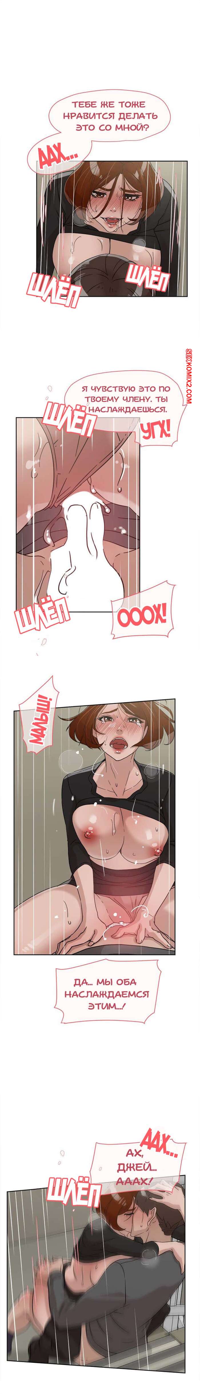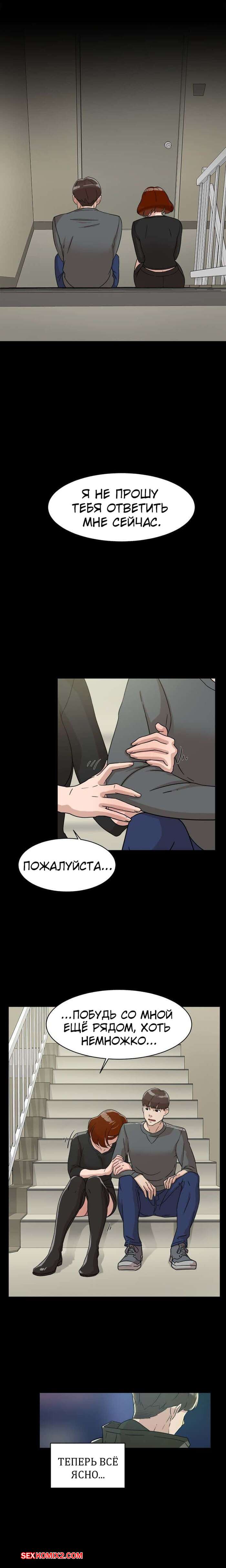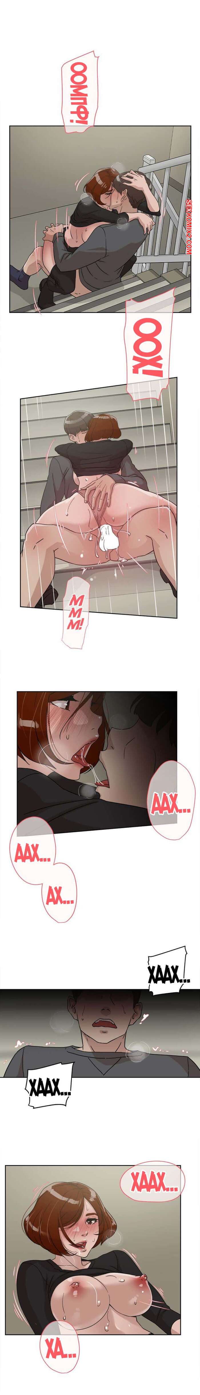 Порно комикс Её 4 размер. Часть 60. Her 4 Incher. Жещина захотела трахаться прямо на лестничной площадке. Не боясь того, что кто-то пойдем мимо. Она сняла с парня штаны и села на него сверху.
