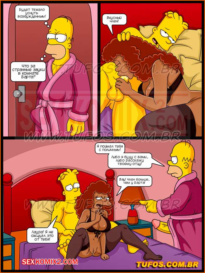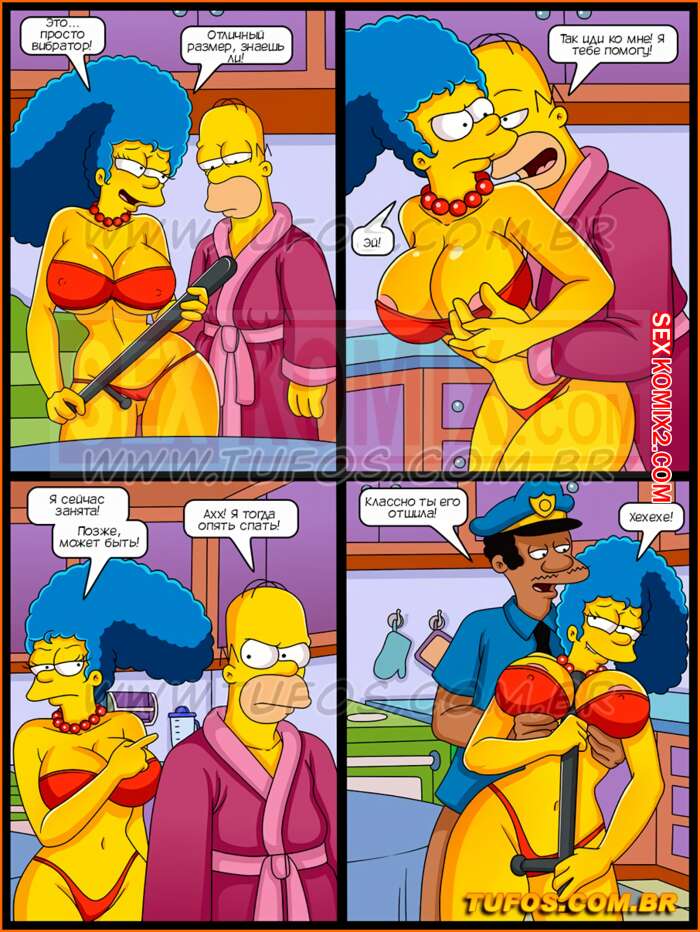 Порно комикс Симпсоны. Часть 34. Дубинка полицейского. Барт пригласил в гости дочь местного полицейского, и только она начали развлекаться как домой вернулась Мардж с отцом гостьи и начали трахаться на кухонном столе. Молодой паре пришлось уединиться в комнате.