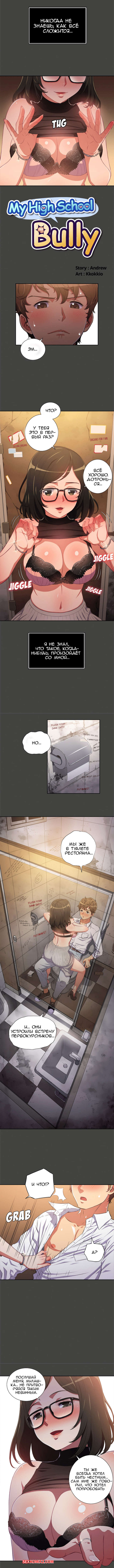 Порно комикс Изгой из старшей школы. Части 1 и 2 и 3. My High School Bully Горячая сисястая брюнетка повела своего дружка в школьный туалет.Там она быстренько разделась перед ним и стала сосать его большой хуй, после чего встала раком и попросила ее выебать.