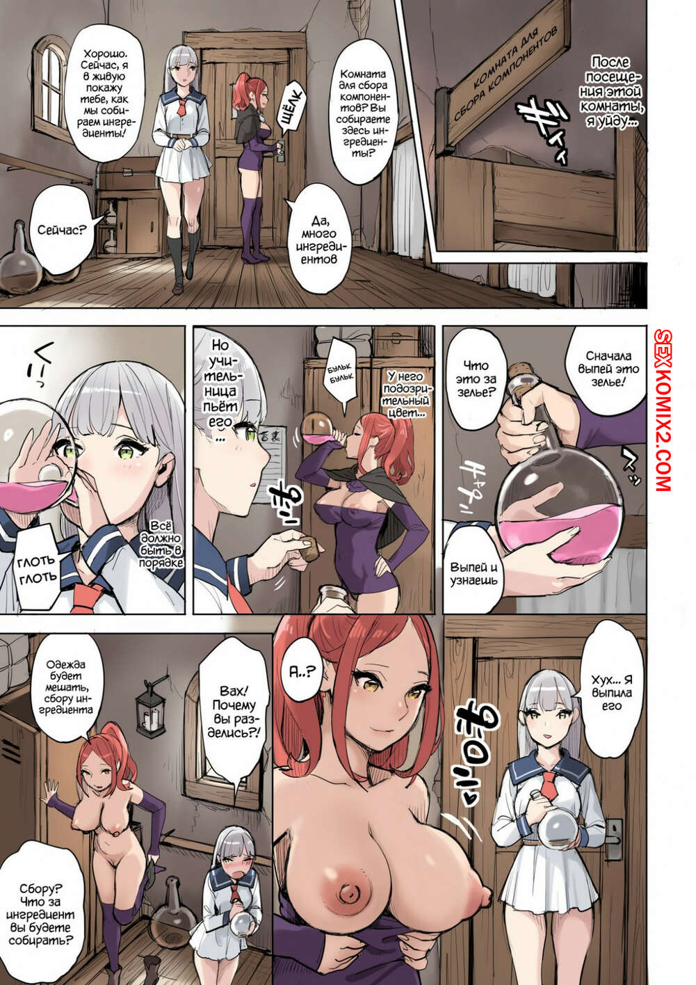 Порно комикс Ингредиент для волшебного зелья. Девушки красавицы, увлекаются магическими зельями, чтобы заполучить ингредиенты для нового зелья им нужна мужская сперма.