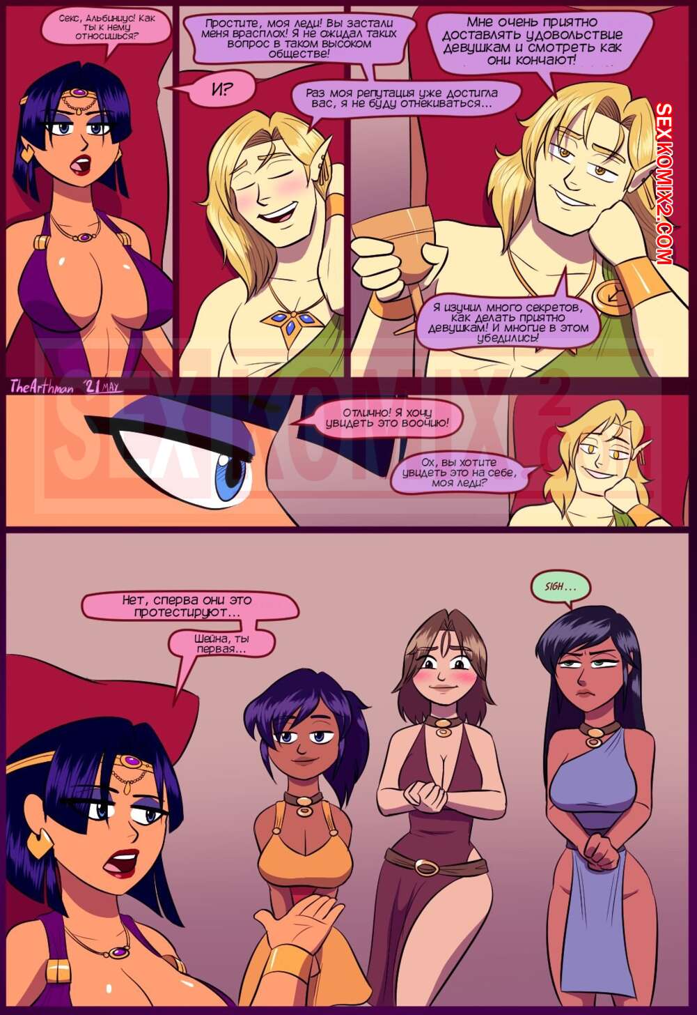 Порно комикс Эльфы на продажу. Часть 2. Elves For Sale. The Arthman. Эльфийки рабыни с членами продолжают свои секс похождения, они попадают к новому хозяину и утешают его разными способами.