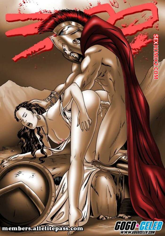 Порно комикс Арты про 300 стартанцев. 300 Spartans. GoGoCeleb Горячая милфа брюнетка решила хорошенько проводить своего мужа Леонида в бой. Она разделась и стала сосать его большой хуй, после чего дала выебать себя в разных позах.