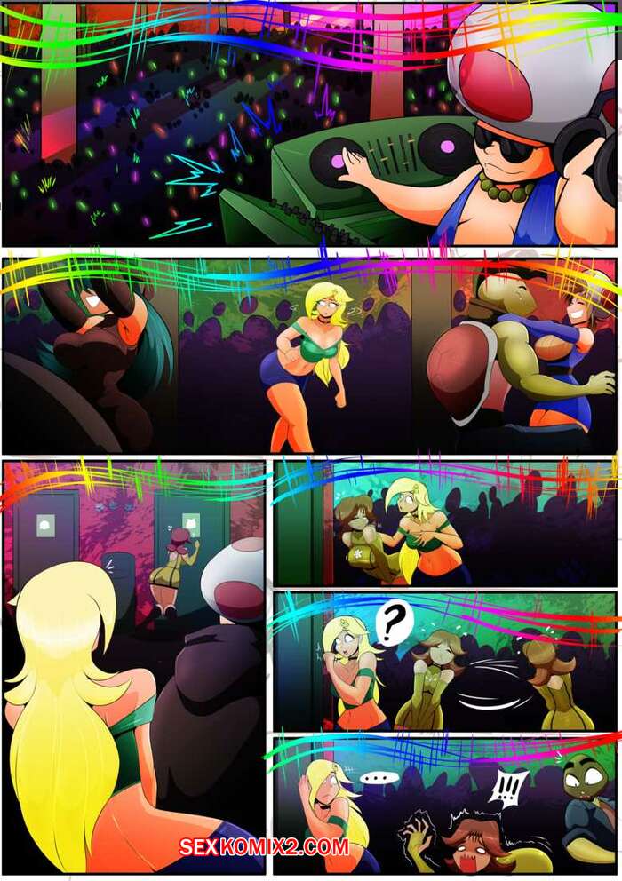 Порно комикс Марио. Вечеринка. Девушки отдыхали в ночном клубе, они попробовали странные грибы, от которых у них начал расти живот. Это возбудило красоток и они начали трахаться в туалете.