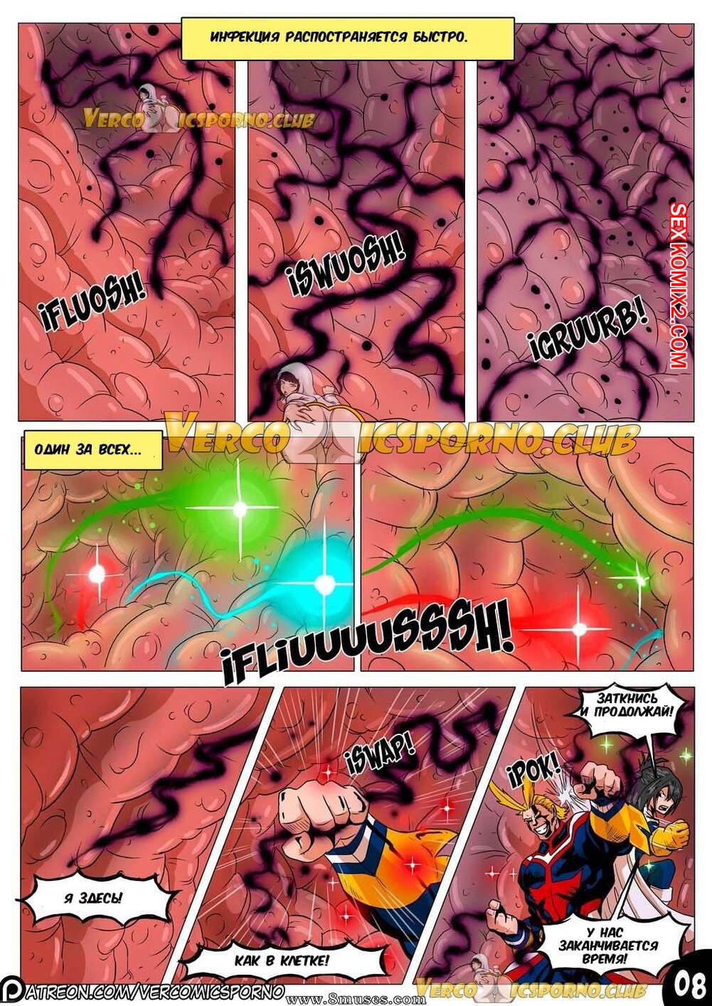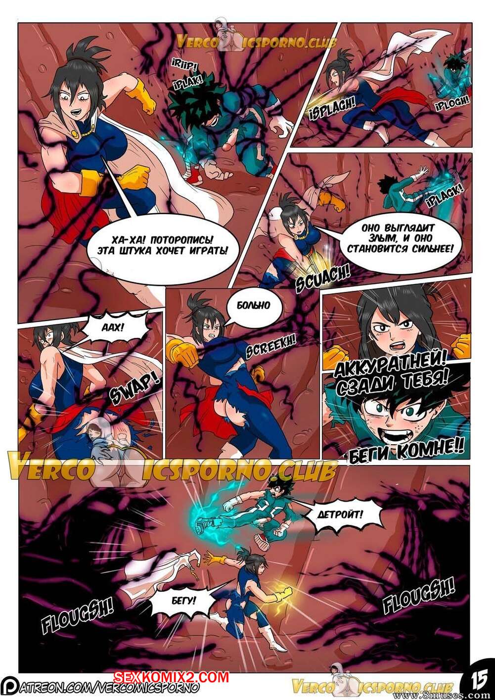 Порно комикс Академия. Животный магнетизм. Парень супер герой приложил все усилия чтобы победить злодея. этот подвиг возбудил его подружку. Позже, когда он был дома один девушка пришла к нему, чтобы по трахаться.