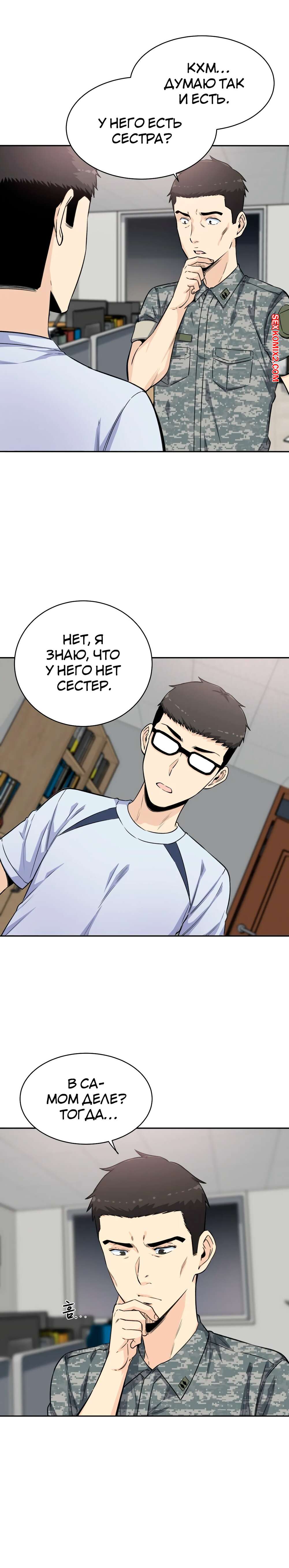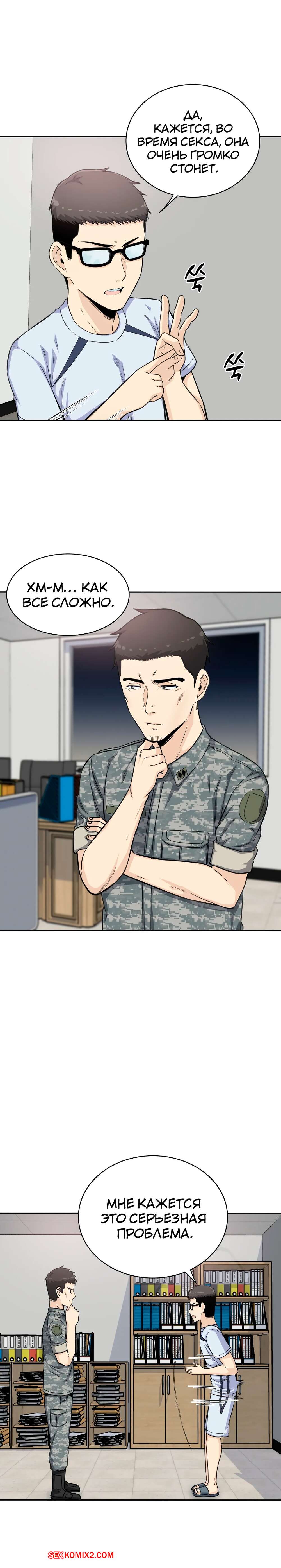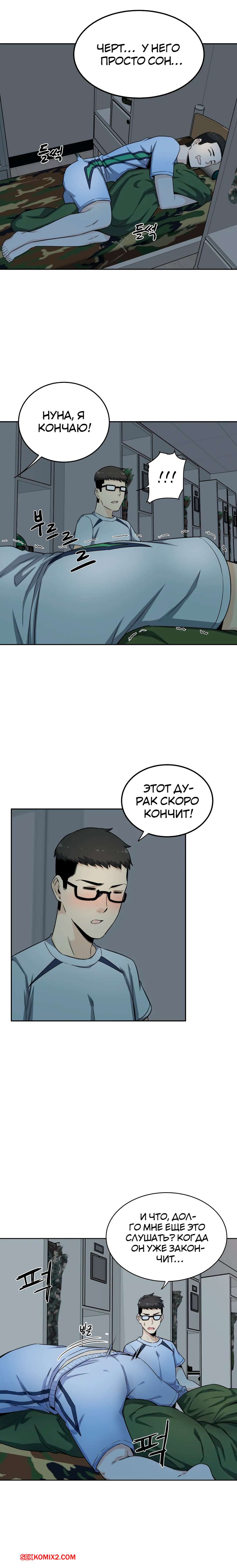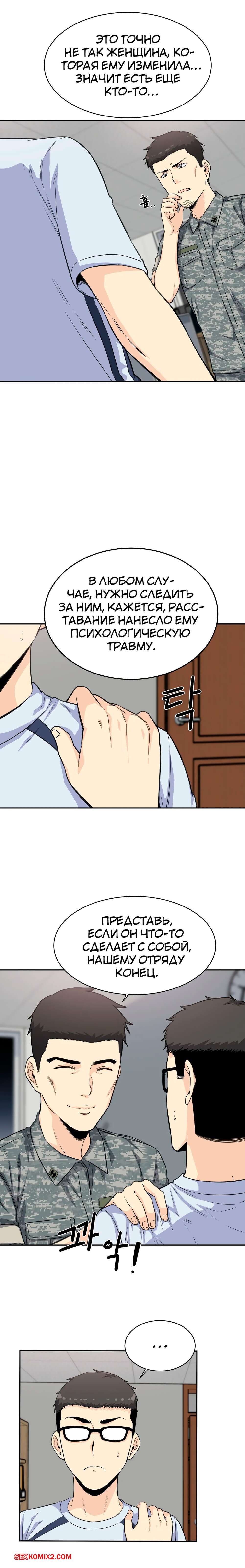 Порно комикс Посещение. Часть 4 и 5 и 6. Visit Gomusin. Парень увидел какой большой хуй у его сослуживца и не слабо позавидовал. Даже во время последнего секса с его девушкой, она сказала его член маленький.