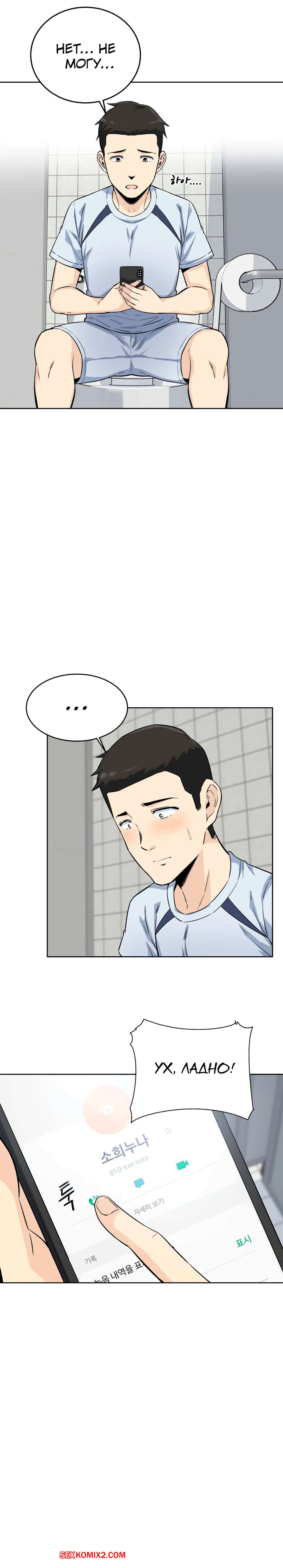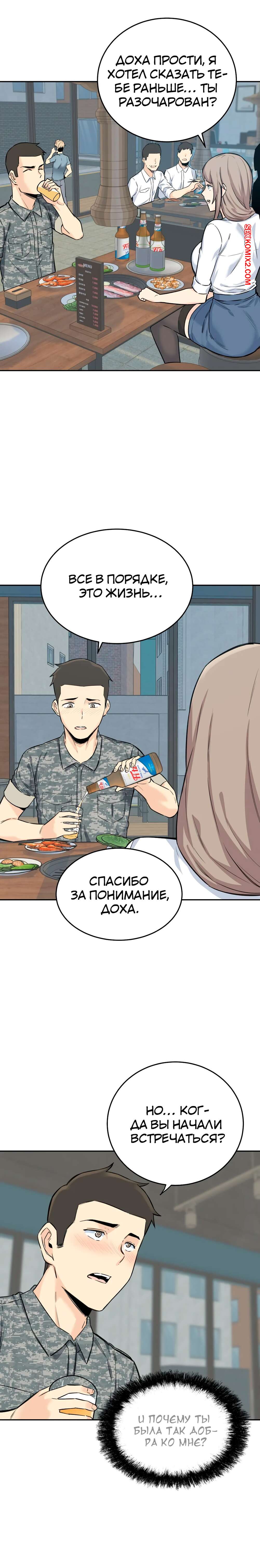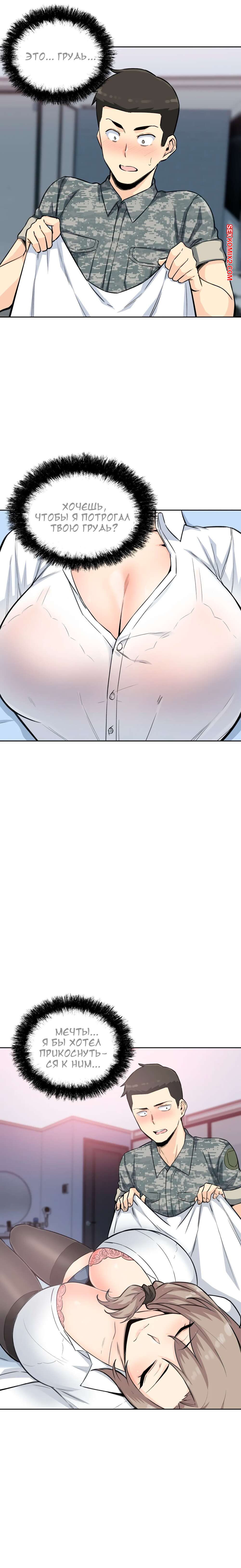 Порно комикс Посещение. Часть 4 и 5 и 6. Visit Gomusin. Парень увидел какой большой хуй у его сослуживца и не слабо позавидовал. Даже во время последнего секса с его девушкой, она сказала его член маленький.