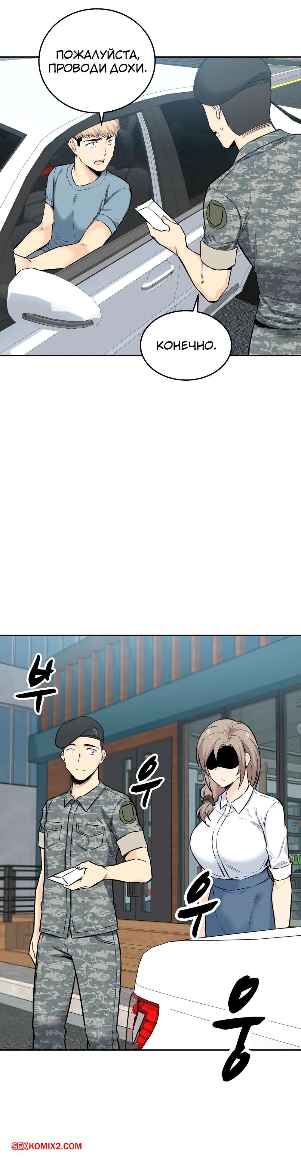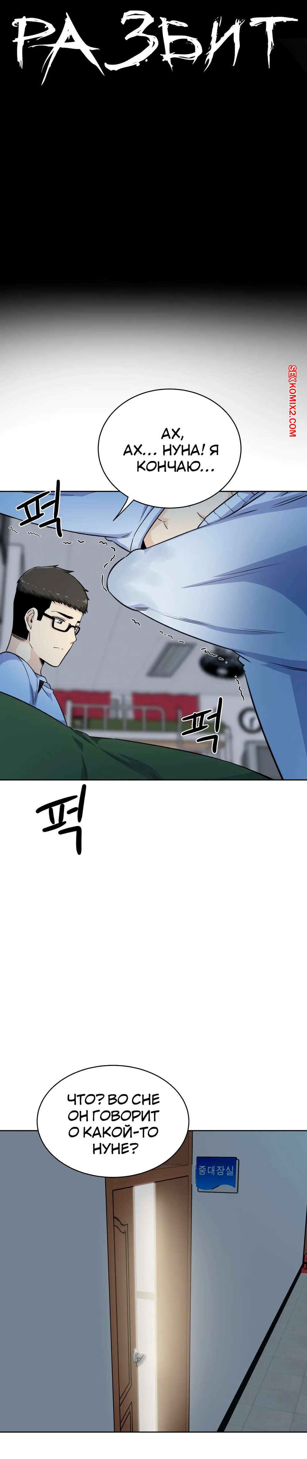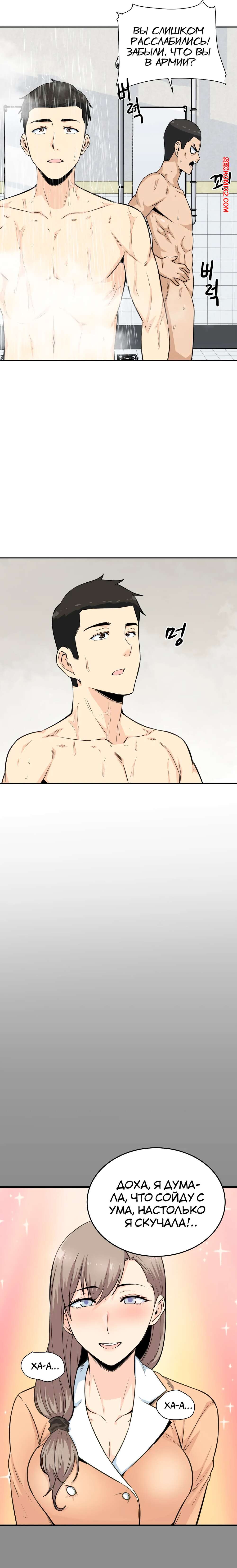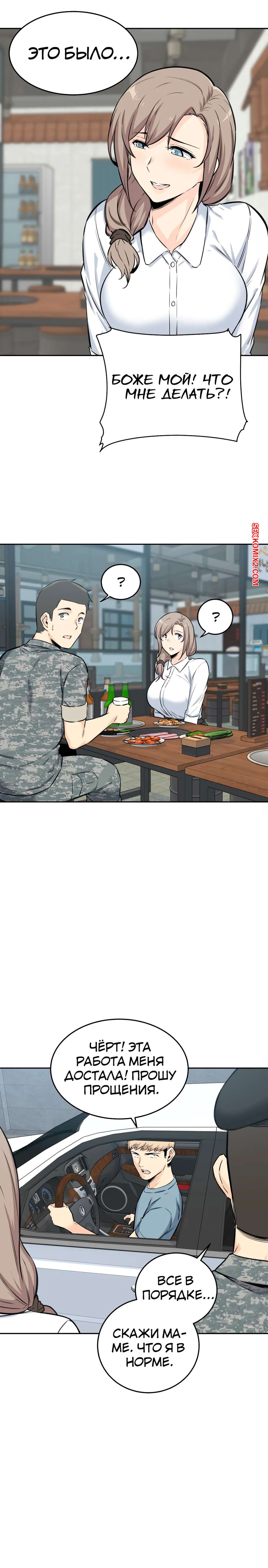 Порно комикс Посещение. Часть 4 и 5 и 6. Visit Gomusin. Парень увидел какой большой хуй у его сослуживца и не слабо позавидовал. Даже во время последнего секса с его девушкой, она сказала его член маленький.