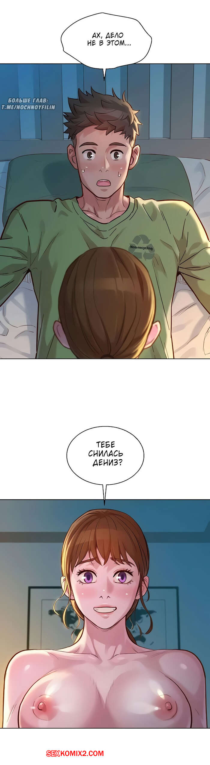 Порно комикс Сестра по соседству. Часть 147. Sister Neighbors. Парень спал и говорил во сне, он назвал имя девушки, но не той что была рядом. Это привело к интересному разговору.