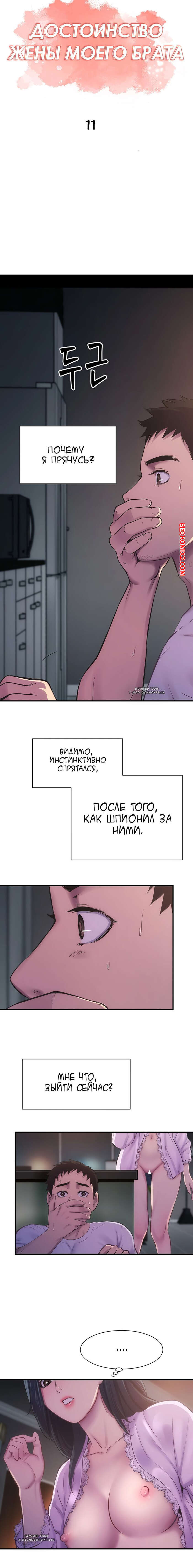 Порно комикс Достоинство жены моего брата. Части 10 и 11. Brothers wife dignity Парнишка продолжает пялиться на горячую жену своего брата. Оставшись с ней наедине, он никак не смог сдержать свое возбуждение, поэтому стал приставать к ней и ласкать ее большие сиськи, после чего хорошенько ее выебал.