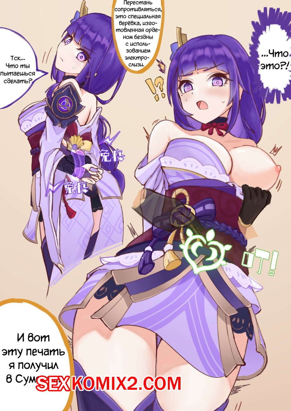 Порно комикс Райден Сёгун и Итэр. Raiden Shogun x Aether Парнишка с большим хуем решил выебать шикарную красотку. Он стал делать ей комплименты и соблазнять ее, что он быстро возбудилась и позволила ему трахнуть хорошенько.