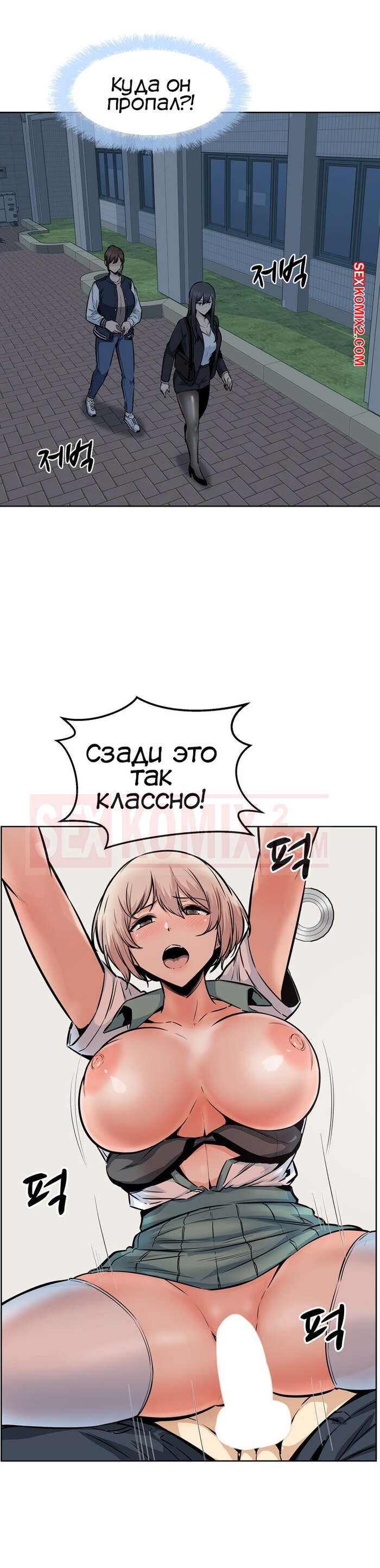 Порно комикс Извини, это моя комната. Часть 91. Excuse me This is my Room Парнишка встретила после концерта со своей бывшей подругой. Они решили уединиться в школьном классе и стали вспоминать былые времена, а затем парень не смог себя сдерживать и выебал красотку, чему она была только рада.