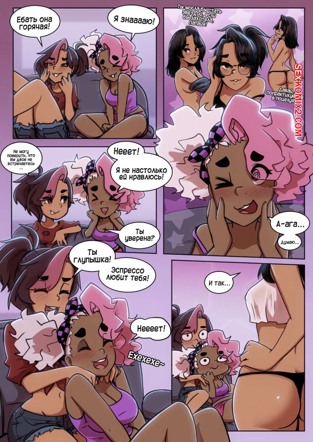 Порно комикс Предел мечтаний. Часть 2. Apex Limit Горячие красотки любят часто весело проводить время и заниматься лесбийской еблей. Некоторые из них веселятся голые в душе и ласкаю друг дружке пизденку, а другие трахаются по настоящему, ведь у одной из них есть большой хуй, которым она умело пользуется.