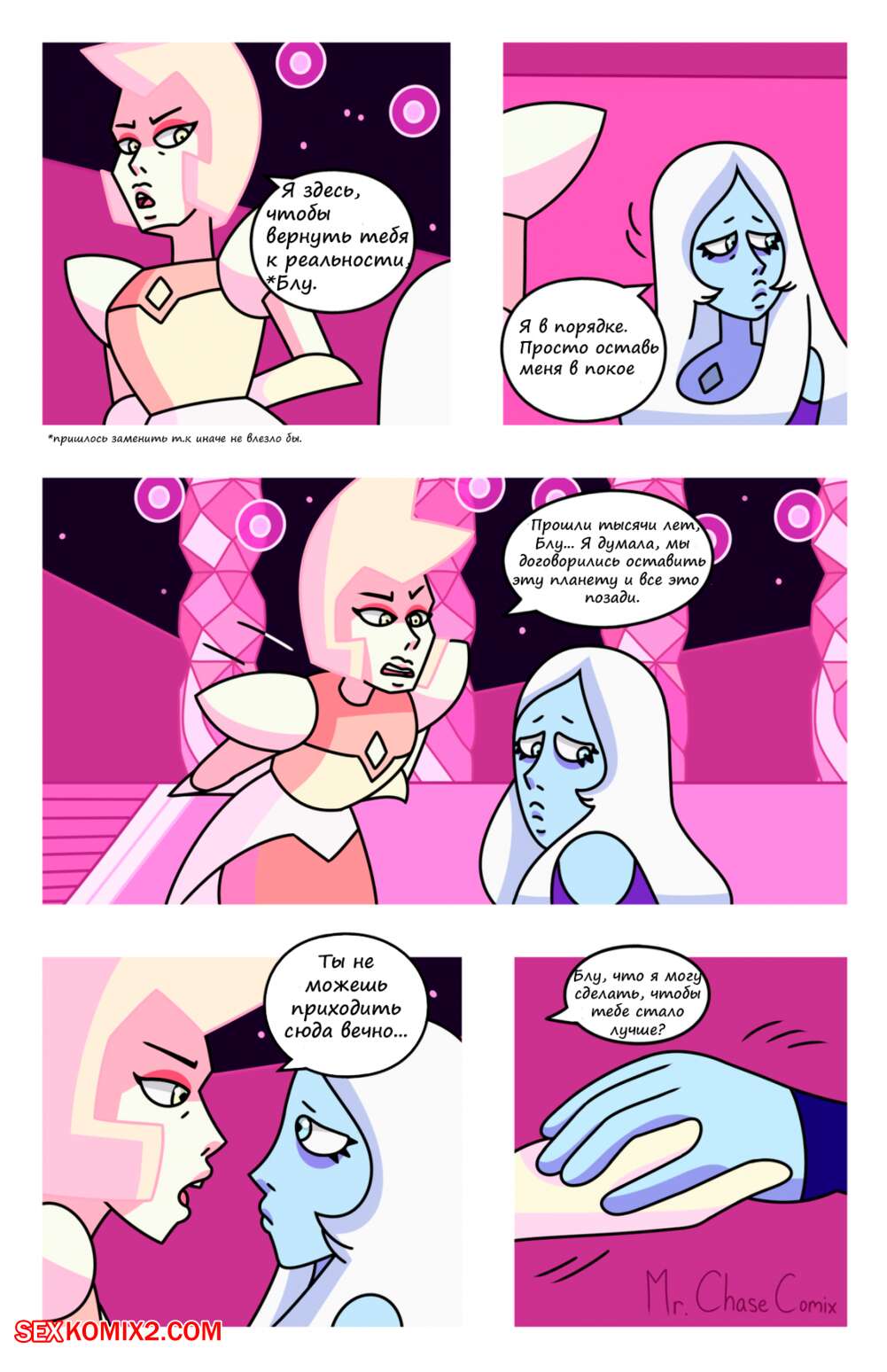 Порно комикс Вселенная Стивена. Будь моим Алмазом. Be My Diamond. Mr.ChaseComix Две горячие красотки с большими сиськами любят проводить время вместе и доставлять друг дружке удовольствие. Они разделись и начали ласкать большие сиськи друг дружки, после чего занялись страстной лесбийской еблей.