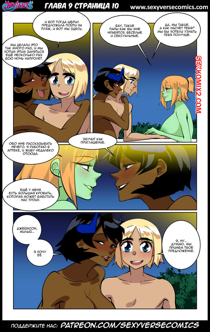 Порно комикс Извращенцы. Deviants. Часть 9. Reboot. Веселье на пляже Горячая темнокожая брюнетка отправилась с молодым пареньком на нудистский пляж. Они уединились за скалами и красотка стала сосать его большой хуй, а затем дала ему себя хорошенько выебать.