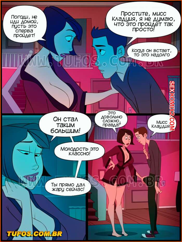 Порно комикс Дом мамы Жоаны. Часть 12. Тещины блины Парнишка пришел в гости к своей девушке, но оказалось, что она его бросила. Мама девушки решили его успокоить и захотела заняться с ним сексом. Она начала сосать его большой хуй, после чего дала ему выебать себя в пизду и задницу.