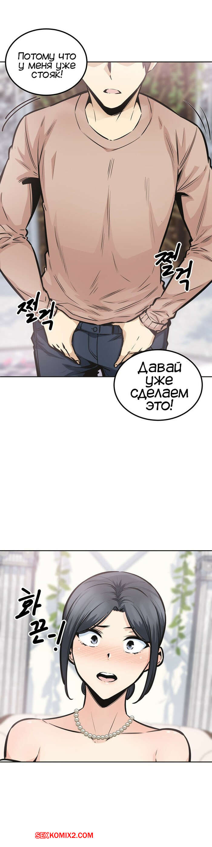 Порно комикс Извини, это моя комната. Часть 99. Excuse me This is my Room Парнишка наконец определился какую девушку он хочет видеть рядом с собой. Он бросился на свадьбу Дажонг, чтобы помешать ей выйти замуж и поскорее с ней поебаться.