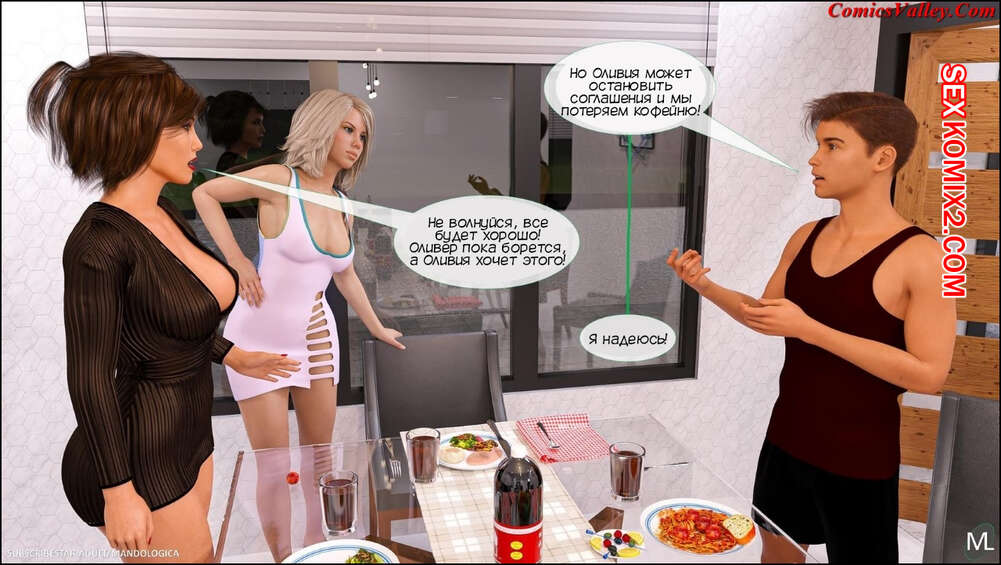 Порно комикс Только для тебя. Часть 10. Just For You. MandoLogica Милфа устроила совместный ужин и решила привести свой план в действие. Она стала ласкать другую милфу, чтобы потом накормить ее сына мясом, пропитанным соками с пизденки его мамочки.