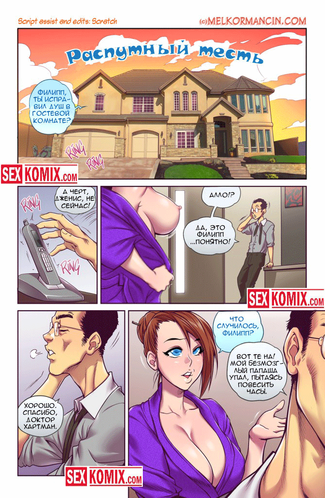 Порно комикс Распутный свекр. О том, как муж попросил женушку поухаживать за своим больным отцом, пока он будет отсутствовать на работе. Ну надо так надо, только женщина никак не ожидала, что у старого свекра будет такой большой и упругий член, который на удивление замужней телочки был в полной боевой готовности. И пока, простушка была в растерянности старый пень воткнул свою елду в одну из дырочек.