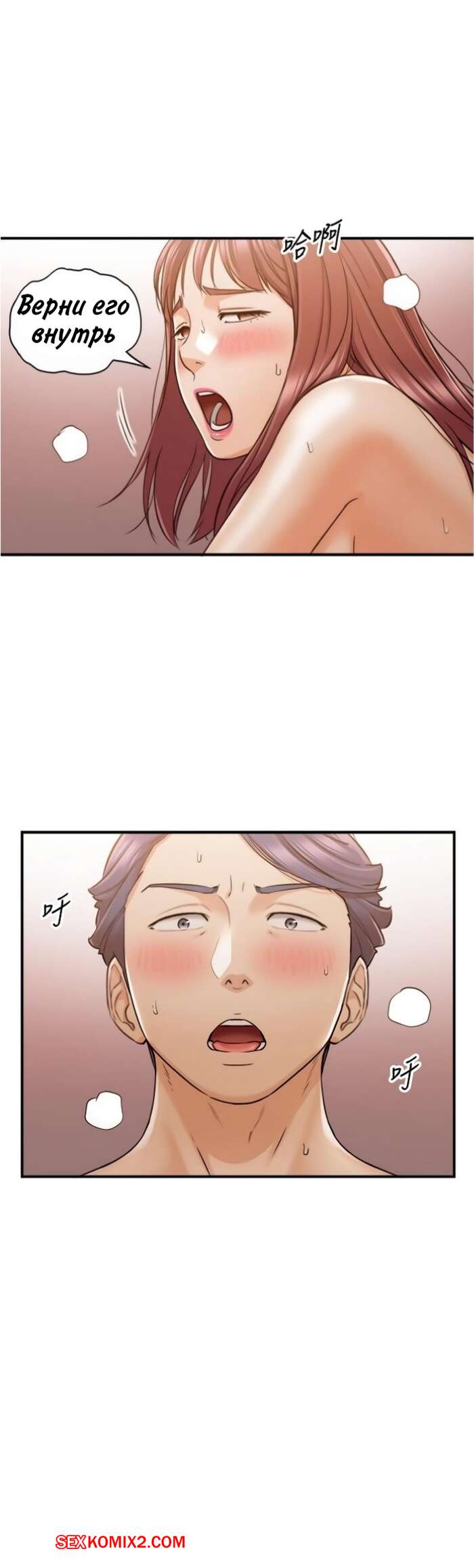 Порно комикс Молодой босс. Часть 83. Young boss Горячая брюнетка разделась перед своим дружком с большим хуем и стала ему отсасывать, после чего раздвинула перед ним ножки, чтобы он ей отлизал пизденку, а затем хорошенько выебал.
