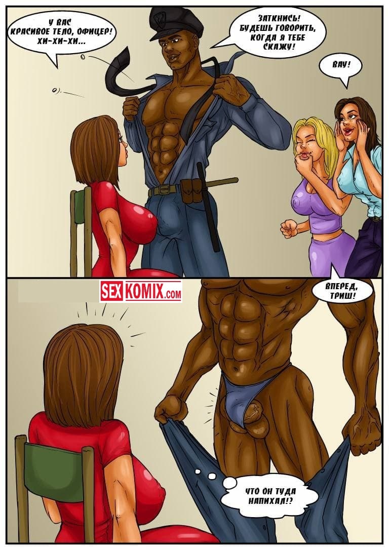 Порно комикс Девичник. Три красавицы подружки решили устроить своей подруге девичник и подарили темнокожего стриптизера. Сначала парень усадил девушку на стул и накачал алкоголем чтобы та перестала стесняться. А потом начал тереться об неё своим большим членом. Давая периодически ей в рот. Подружки хихикали наблюдая за этим действием. Девушка изрядно возбудилась. Видя это парень предложил её подружкам поехать в бар без неё. А сам тем временем хорошенечко оттрахал её на диване. И залил всё её тело спермой.