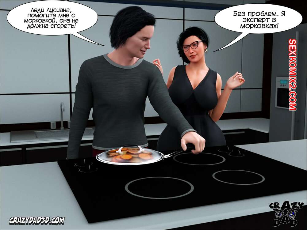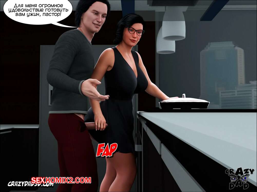 Порно комикс Жена проповедника. Часть 11. The Shepherd Wife. CrazyDad3D Горячая милфа брюнетка решила воплотить свою давнюю мечту в реальность. Она пригласила к себе домой незнакомца из ночного клуба, чтобы он приготовил им с мужем ужин и хорошенько их выебал.