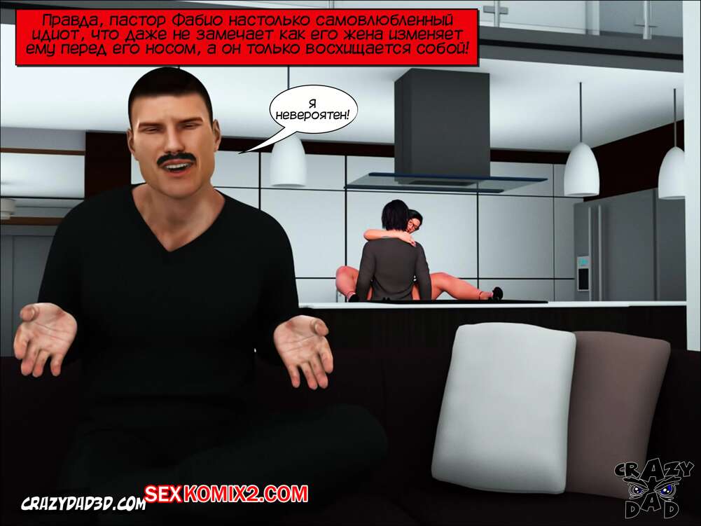 Порно комикс Жена проповедника. Часть 12. The Shepherd Wife. CrazyDad3D Горячая милфа брюнетка отправила своего мужа отдыхать на диван, а сама встала раком перед незнакомцем из ночного клуба и дала ему себя хорошенько выебать в задницу его огромным членом.