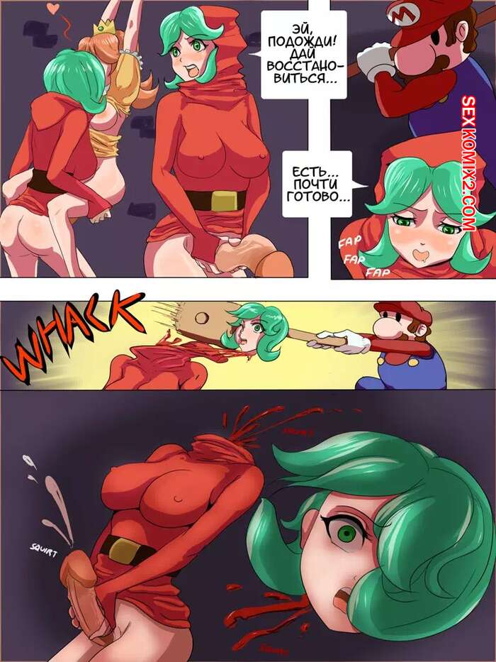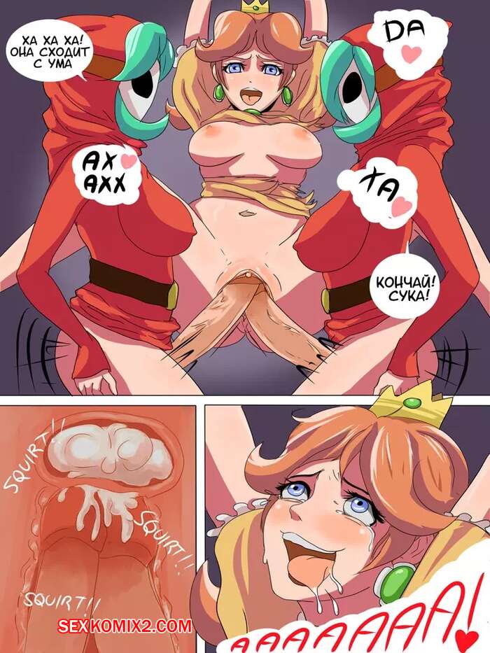 Порно комикс Супер Марио. Безумный день принцессы Пич Пока Марио пытался добраться до своей любимой принцессы, она осталась наедине с двумя горячими красотками с большими хуями. Они дали ей отсосать у них, а затем устроили незабываемое двойное проникновение.