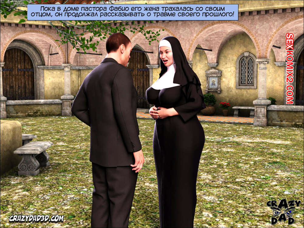 Порно комикс Жена проповедника. Часть 22. The Shepherd Wife. CrazyDad3D Пастор отправился к монашкам, чтобы разобраться со своими детскими травмами, а тем временем его милфа жена решила сделать массаж своему отцу с большим хуем, а затем классно с ним поебаться.