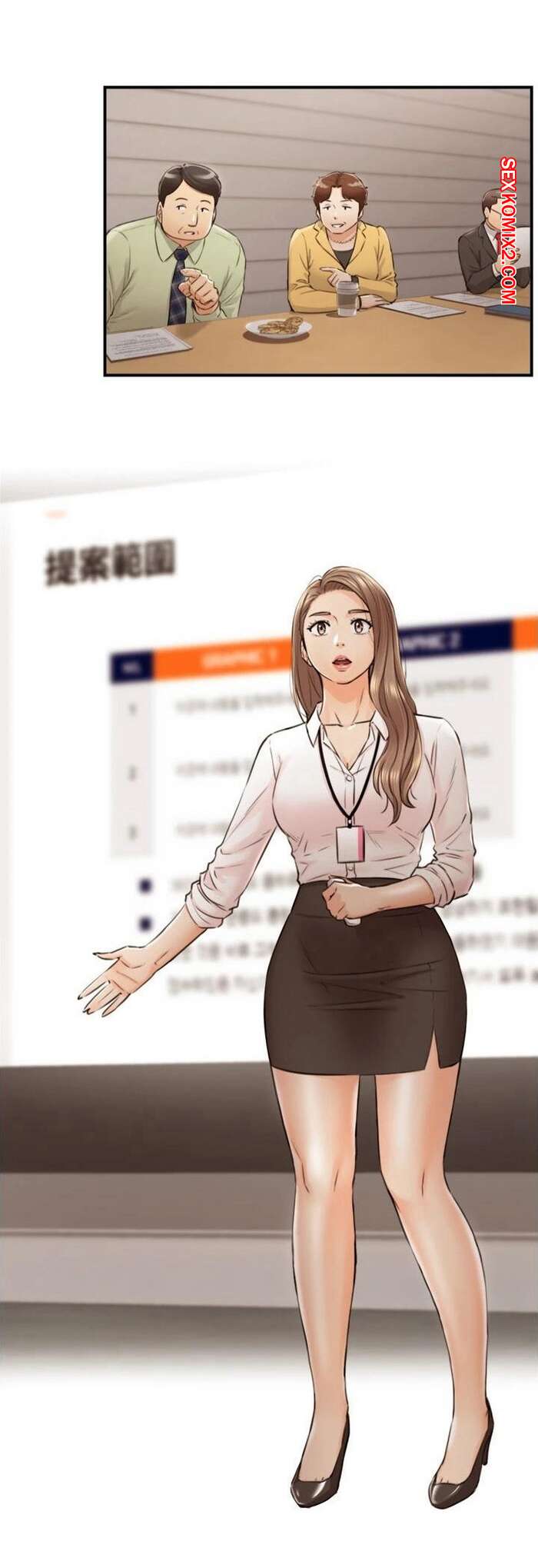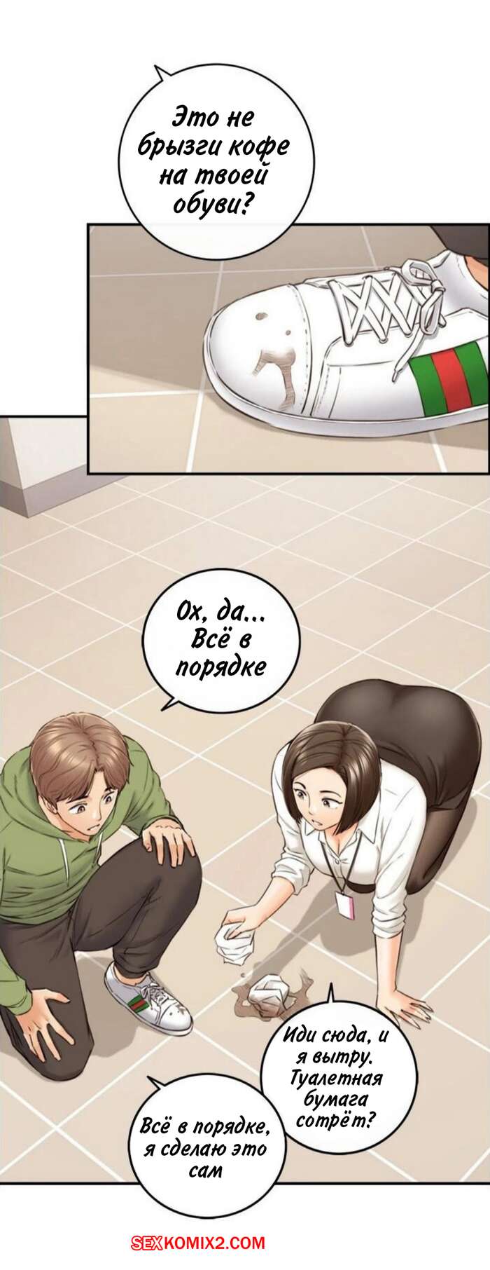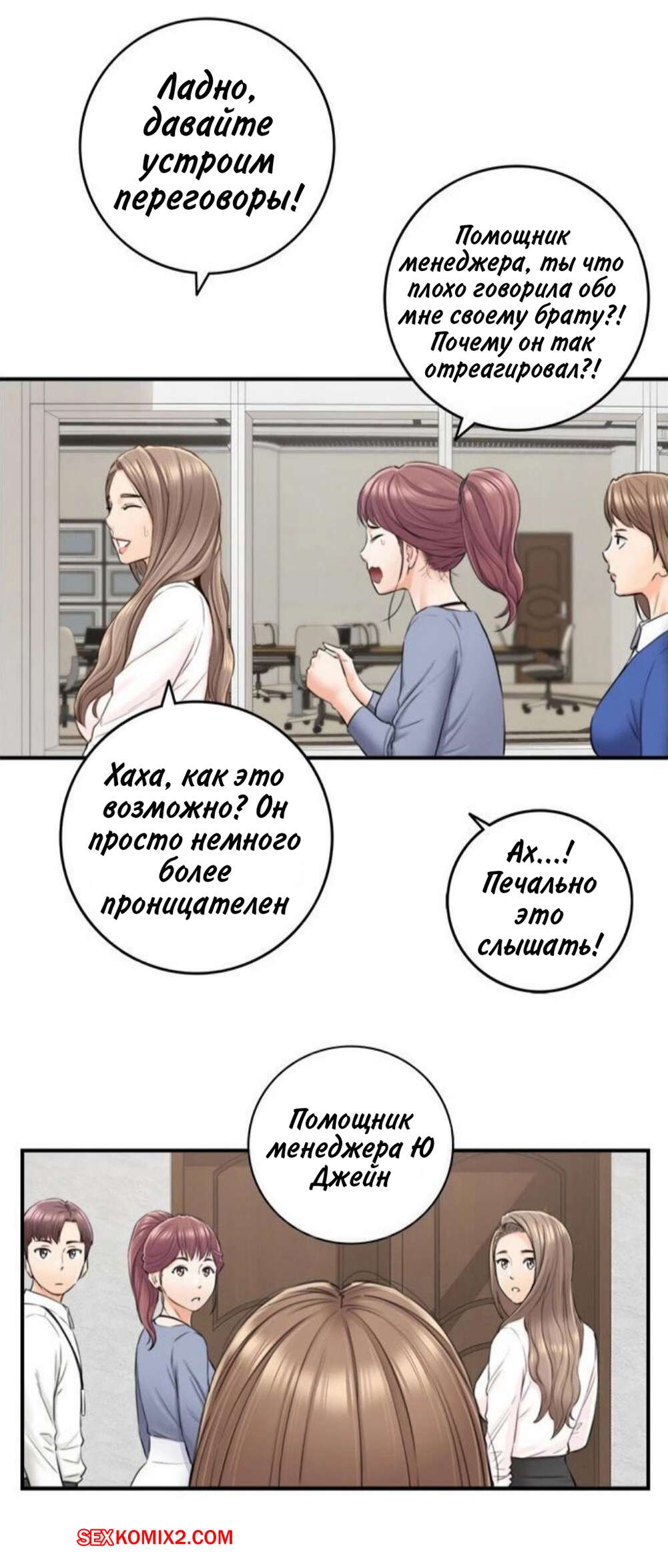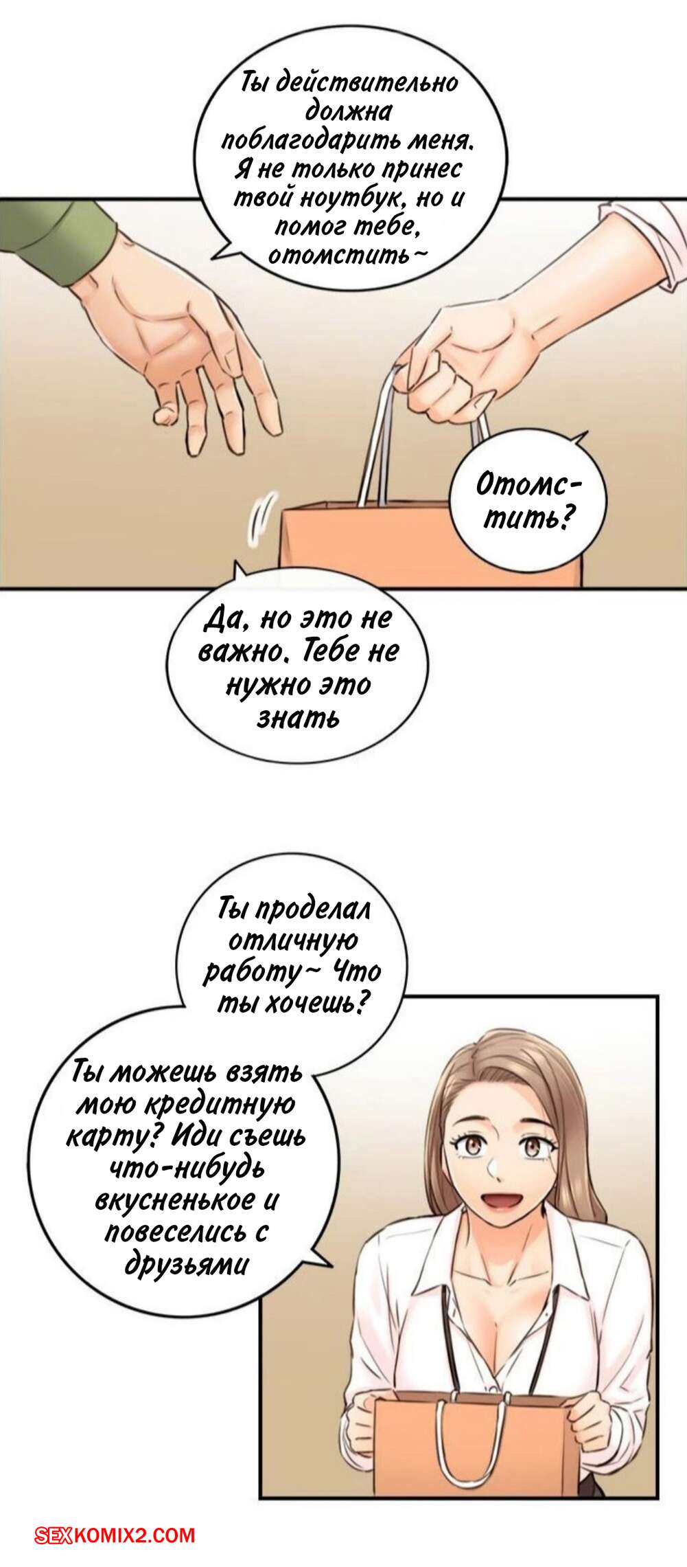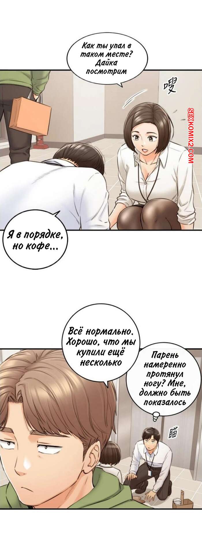 Порно комикс Молодой босс. Часть 100. Young boss Молодой парнишка шел по офису и обратил внимание на горячую красотку брюнетку, которая собирала на полу бумаги. Сучка обладала шикарными формами, поэтому парень решил помочь красотке.