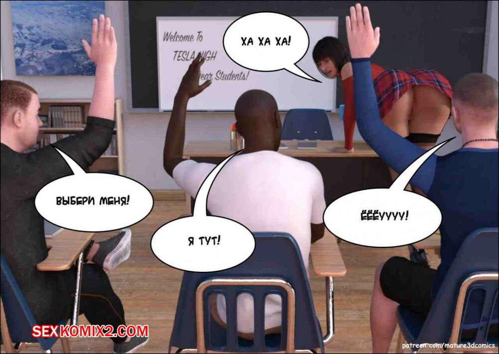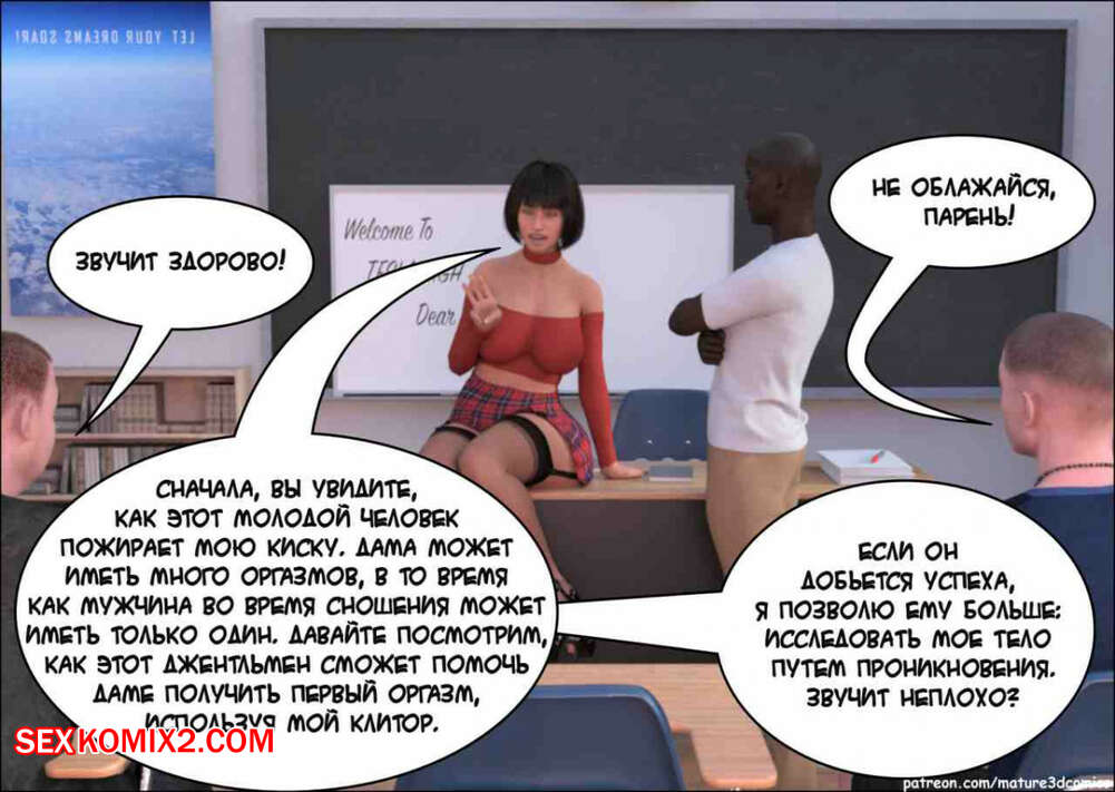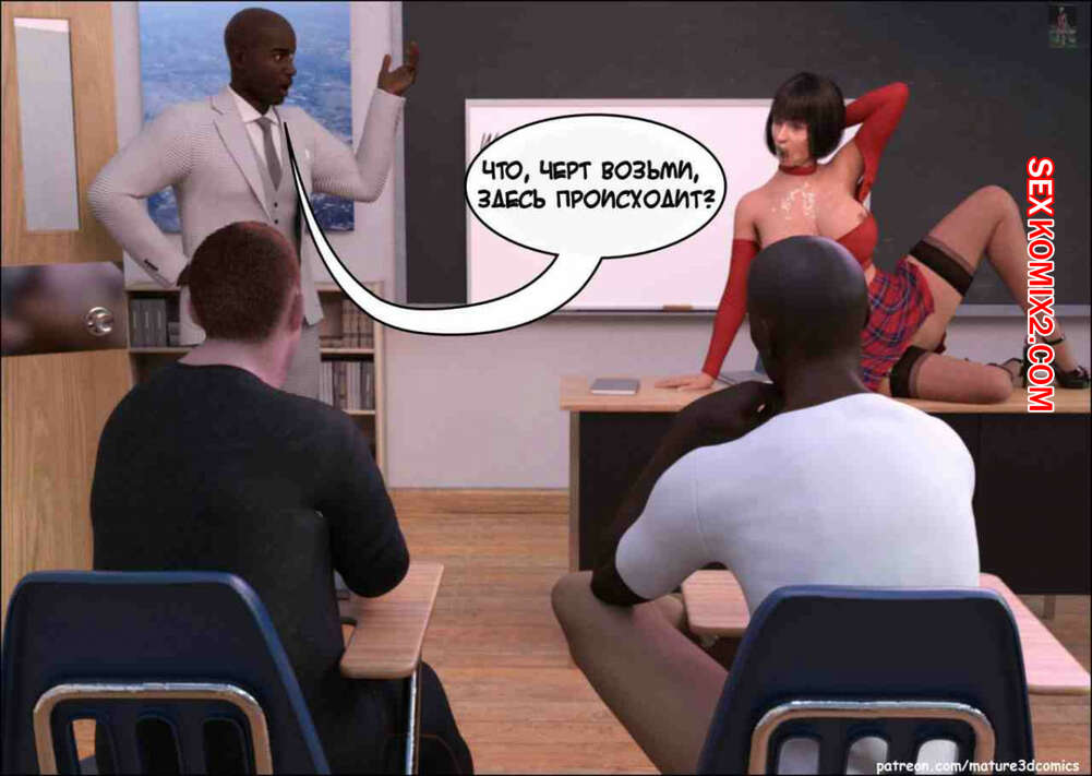 Порно комикс Сексуальная учительница. Mature3dcomics Горячая милфа училка пришла в школу, где ее учениками были похотливые черные парни. Они стали приставать к сучке, а затем поставили на колени и хорошенько выебали ее своими большими хуями.