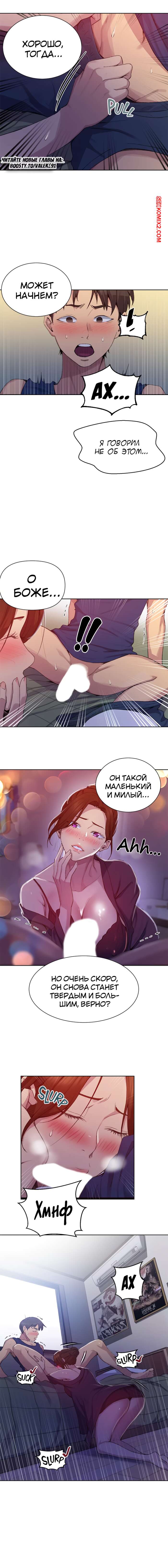 Порно комикс Тайное обучение. Часть 114. SecretClass. В дом вернулся дядя парня, это значит что трахать тетю ему нельзя. Пришлось идти в комнату приемной сестры.