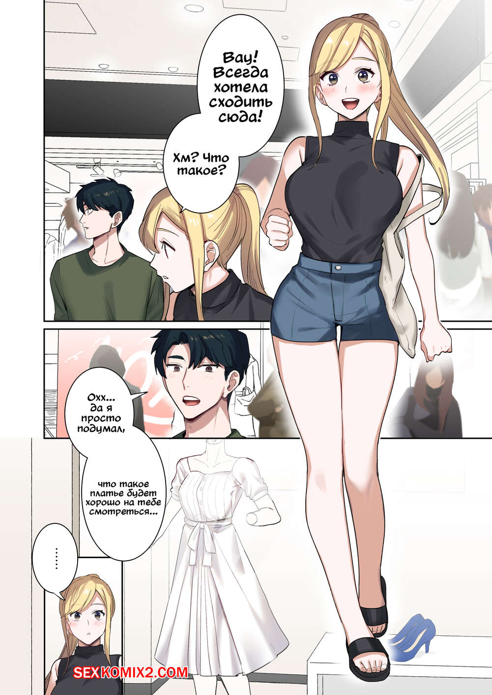 Порно комикс Беглянка. Часть 4. Runaway Girl Горячая блондинка отправилась с парнем в магазин и он решил выебать ее в примерочной. Сперва красотка отказывала ему, но не смогла устоять и все таки дала ему хорошенько выебать свою пизденку.
