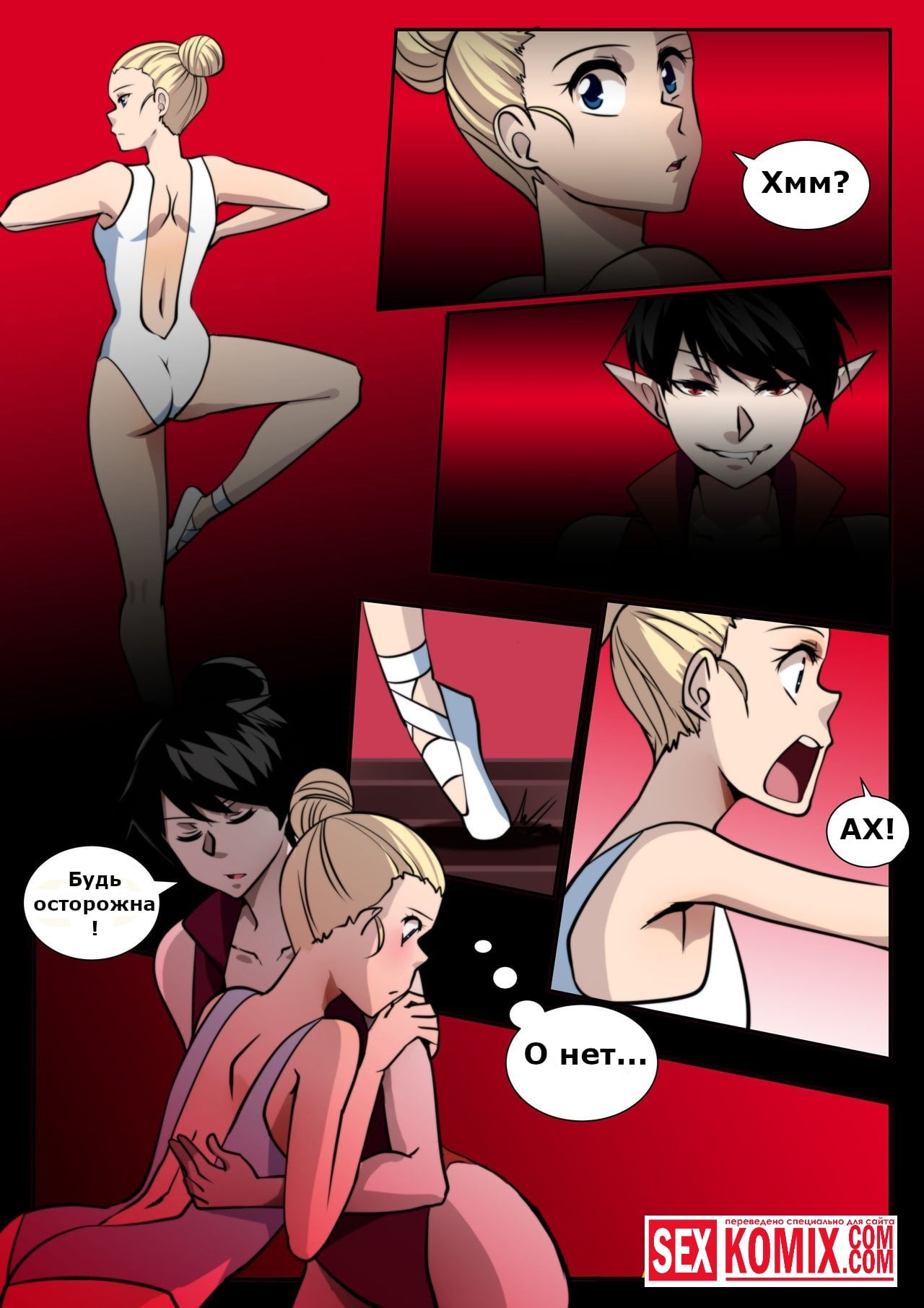 Порно комикс Вампирский дебют. Сексуальная девушка очень давно занимается балетом и хочет стать очень знаменитой балериной, но ей никак не удается, потому что физические данные не позволяют выполнять сложные движения. Об этом узнает ее подруга вампирша, и решает наделить ее невероятной силой, укусив девушку в шею, подруга дает ей возможность продвинуться в своих достижениях.