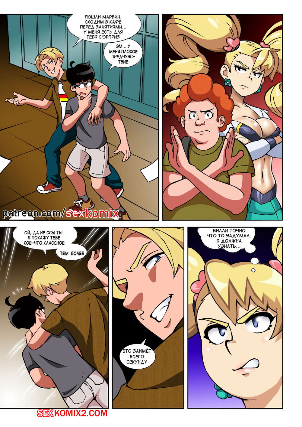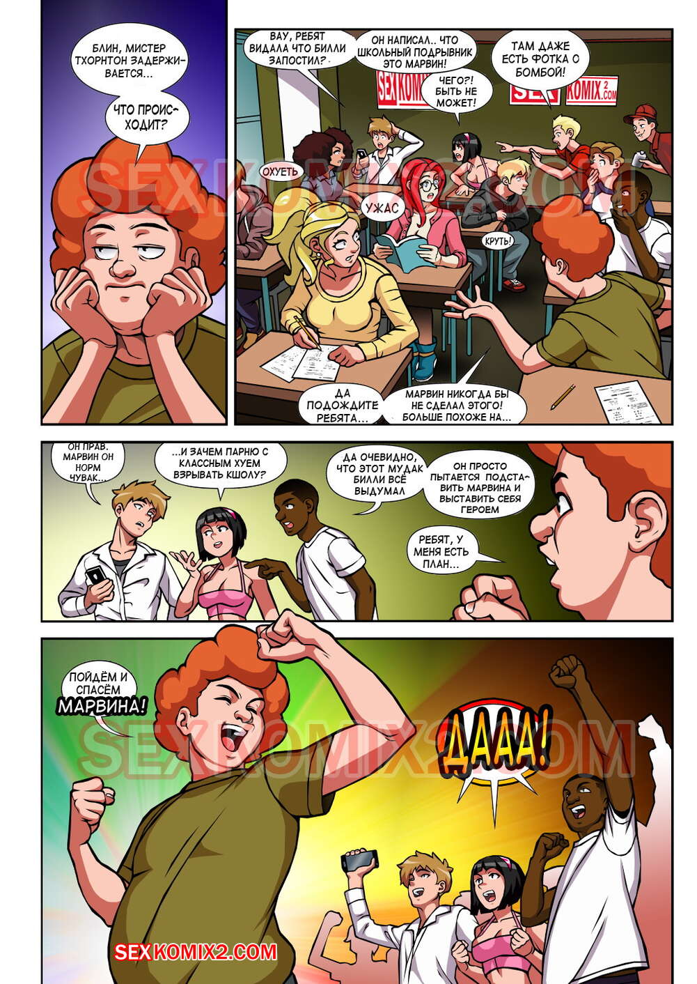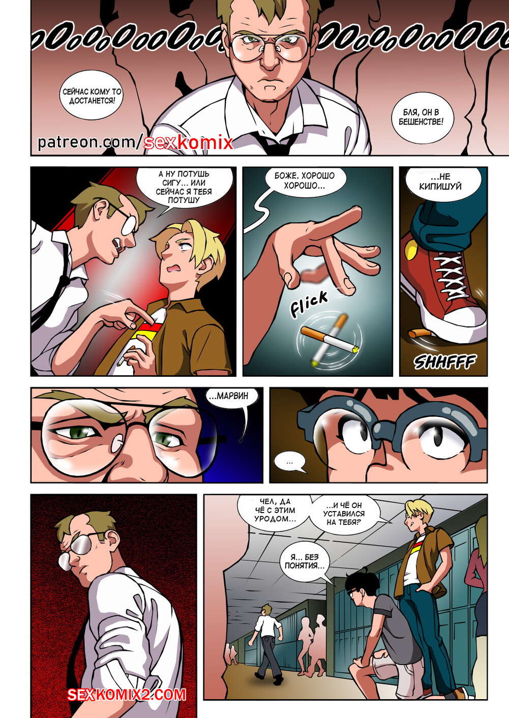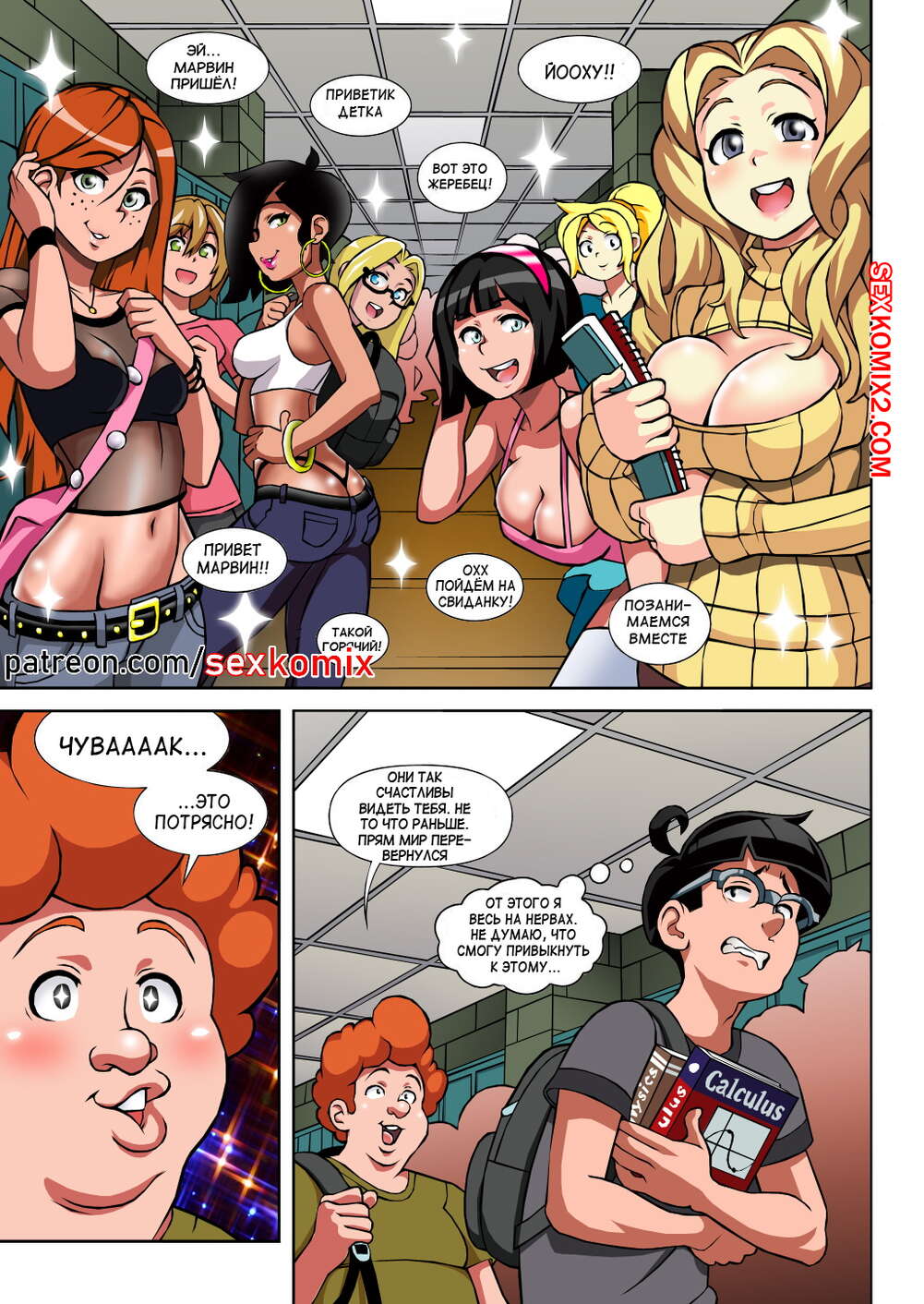 Порно комикс Чёрт так горячо. Часть 2. В цвете. Hot Shit High. Erotibot. После событий первой части, и происшествия в туалете парень постоянно думает о сексе и вспоминает горячую блондинку. Голова девушки тоже забиты мыслями о сексе с альфа самцом, которого она увидела в том туалете.