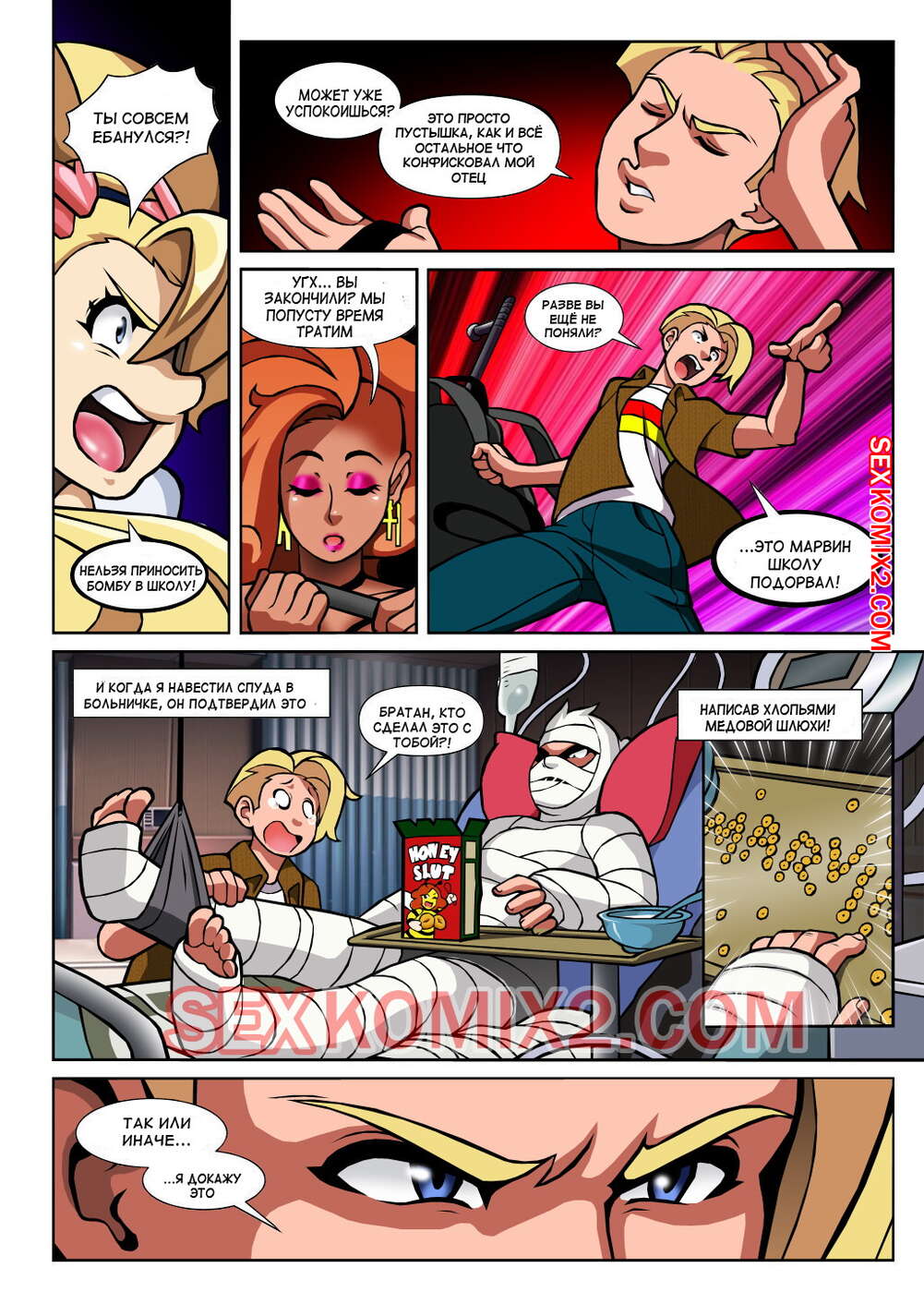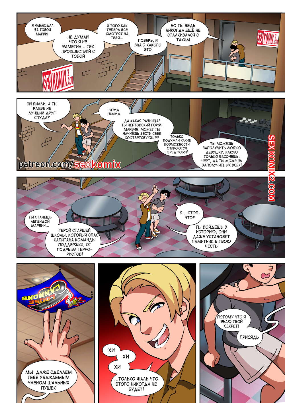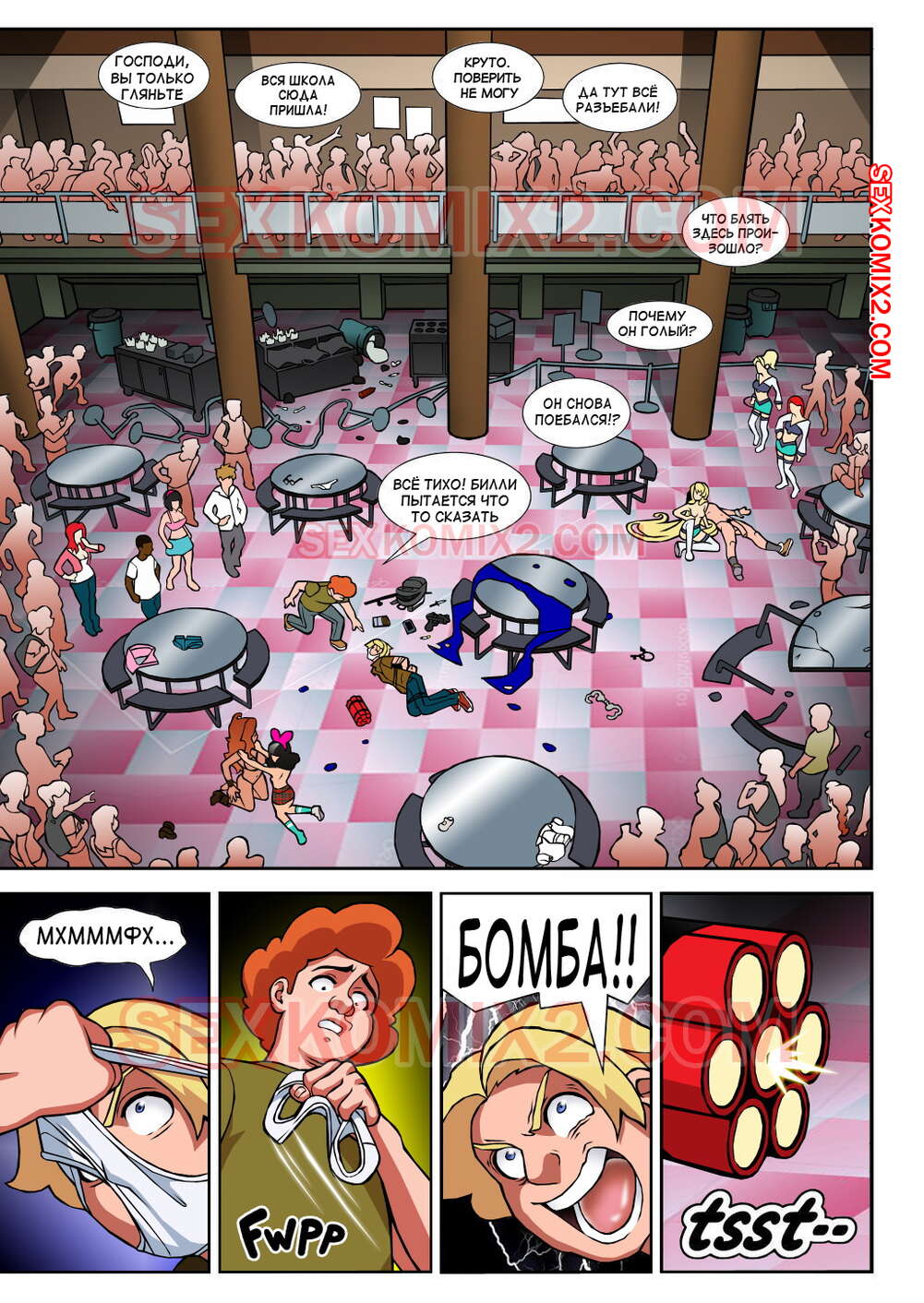 Порно комикс Чёрт так горячо. Часть 2. В цвете. Hot Shit High. Erotibot. После событий первой части, и происшествия в туалете парень постоянно думает о сексе и вспоминает горячую блондинку. Голова девушки тоже забиты мыслями о сексе с альфа самцом, которого она увидела в том туалете.