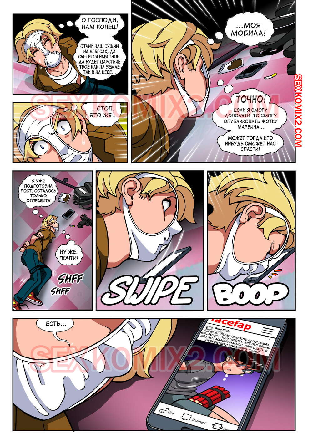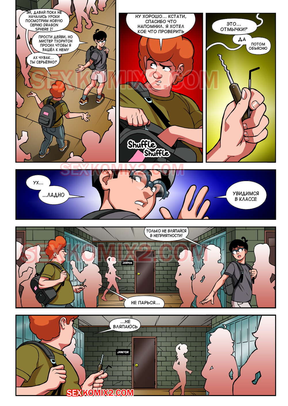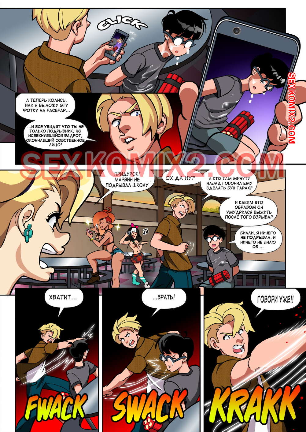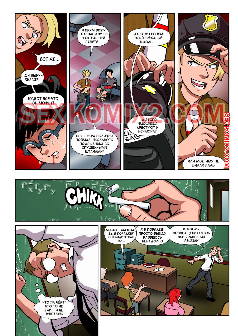 Порно комикс Чёрт так горячо. Часть 2. В цвете. Hot Shit High. Erotibot. После событий первой части, и происшествия в туалете парень постоянно думает о сексе и вспоминает горячую блондинку. Голова девушки тоже забиты мыслями о сексе с альфа самцом, которого она увидела в том туалете.