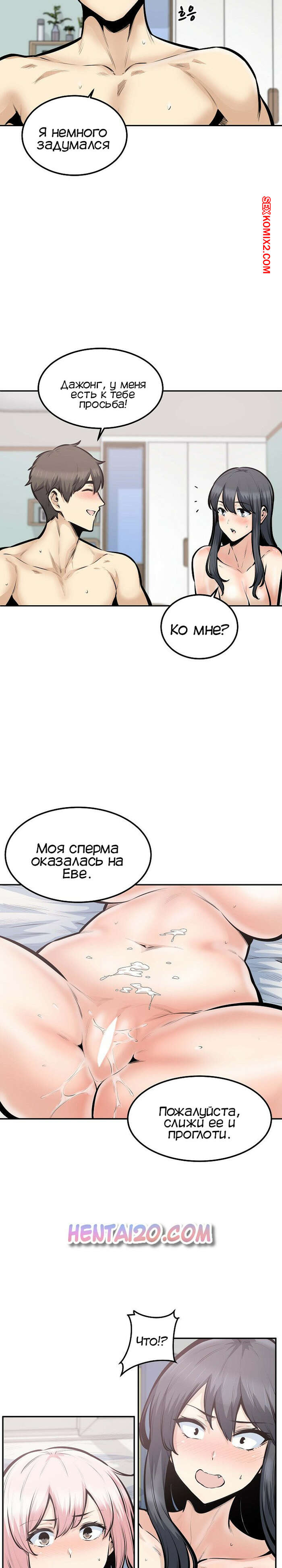 Порно комикс Извини, это моя комната. Часть 106. Excuse me This is my Room Парнишка хорошенько отъебал свою подругу блондинку и кончил на нее, а затем дал указание брюнеточке слизать с нее всю сперму и проглотить ее, что той пришлось и сделать.