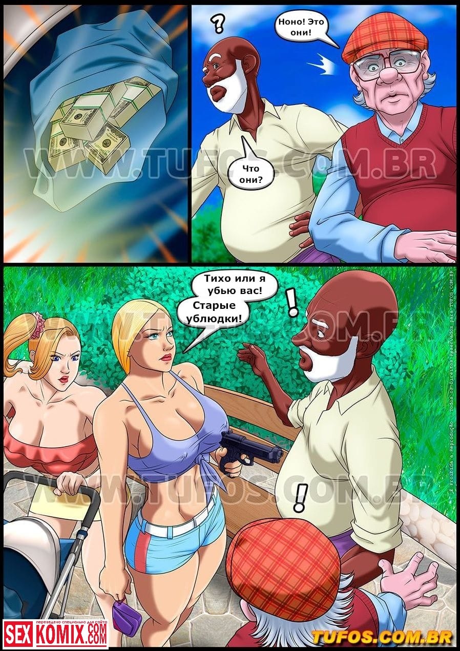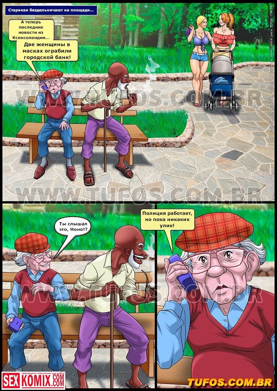 Порно комикс Красивые преступницы. Удалые старички. Часть 7. Две красотки гуляли в парке и встретили двух мужчин. Девушки были настолько развратно одеты, что мужчины не смогли устоять, их члены набухли и они предложили прогуляться до ближайшего укромного местечка где не было народу. И вот девушки сняли свои трусики и выставили киски напоказ. Мужчины сразу начали отлизывать им. А потом оттрахали их в попку. Девушки остались очень довольны ведь их давно так никто не трахал.