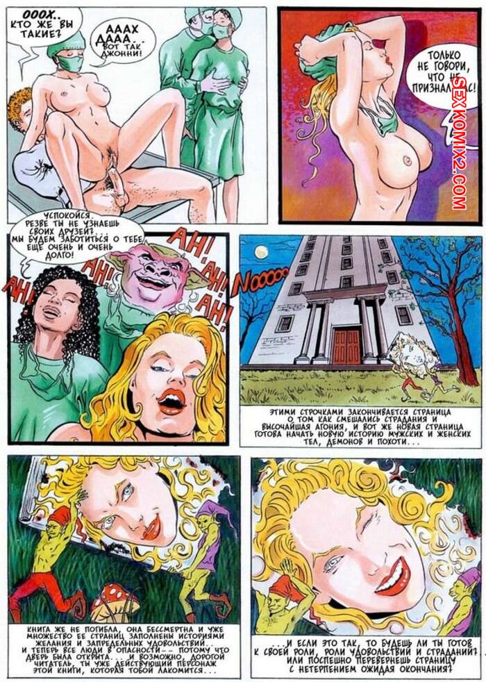 Порно комикс Книга сатаны Сатана пользуется телами молодого парня и девушки, заставляя их трахаться. Парнишка веселился с красотками, которые отсосали его большой хуй и дали ему себя выебать, а после этого сатана присоединился и к ним.