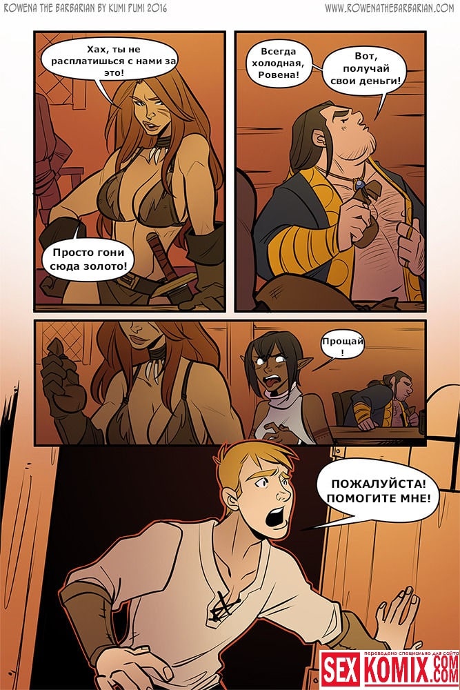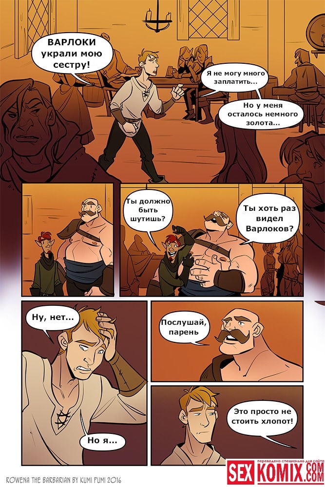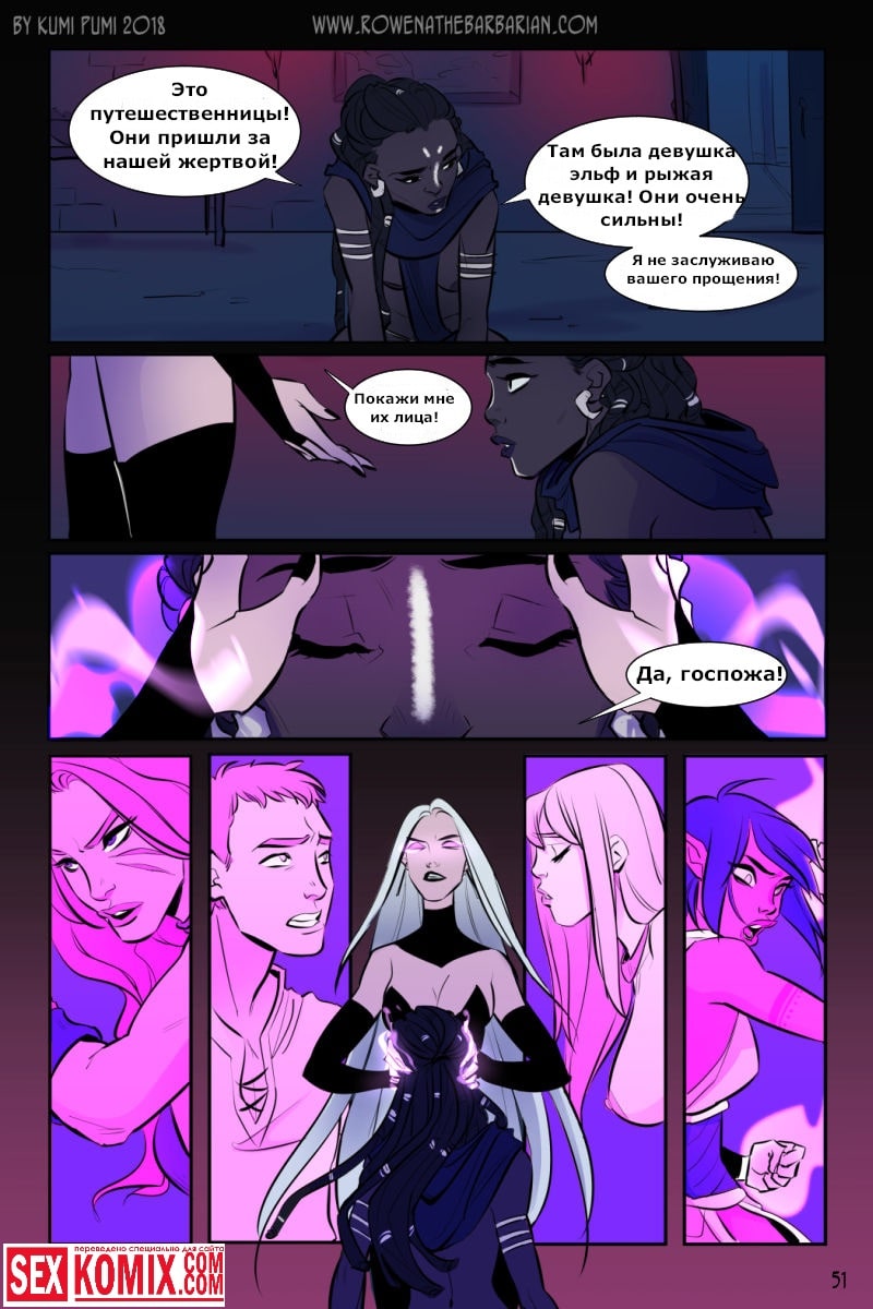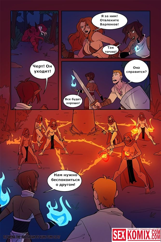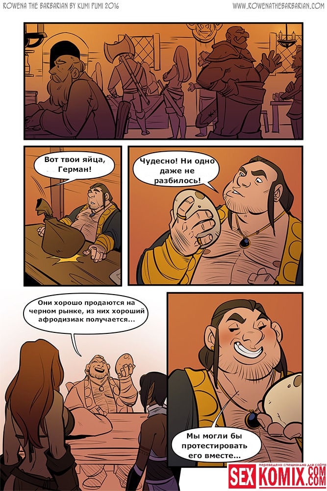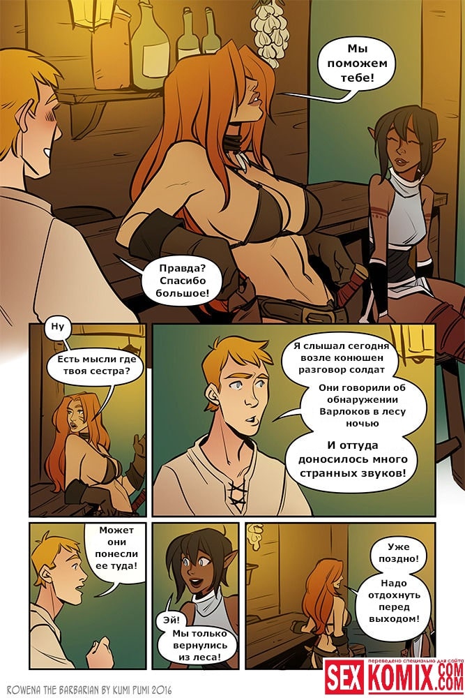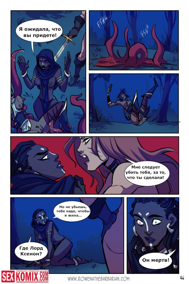 Порно комикс Ровена Варвар. Две путешественницы встретили в таверне мужчину, который просил помощи, т.к неизвестные похитили его сестру. Девушки согласились помочь. Найдя в лесу пленницу, они увидели что девушка привязана к камню и над ней хотят совершить обряд. Извне появился демон с большим членом и решил лишить девушку девственности. Тут началась битва, и демон захватил одну из путешественниц и трахнул её своим огромным членом.