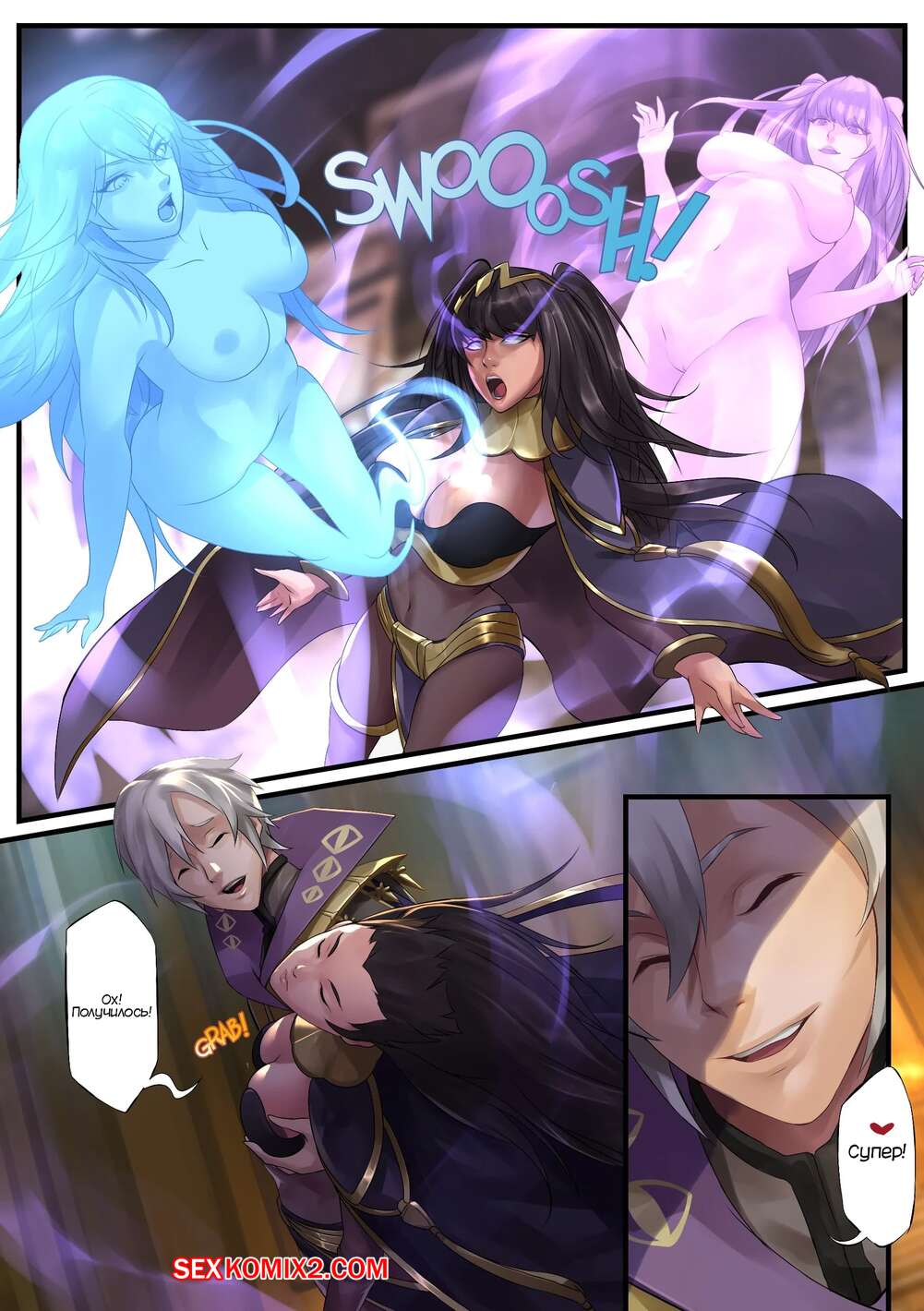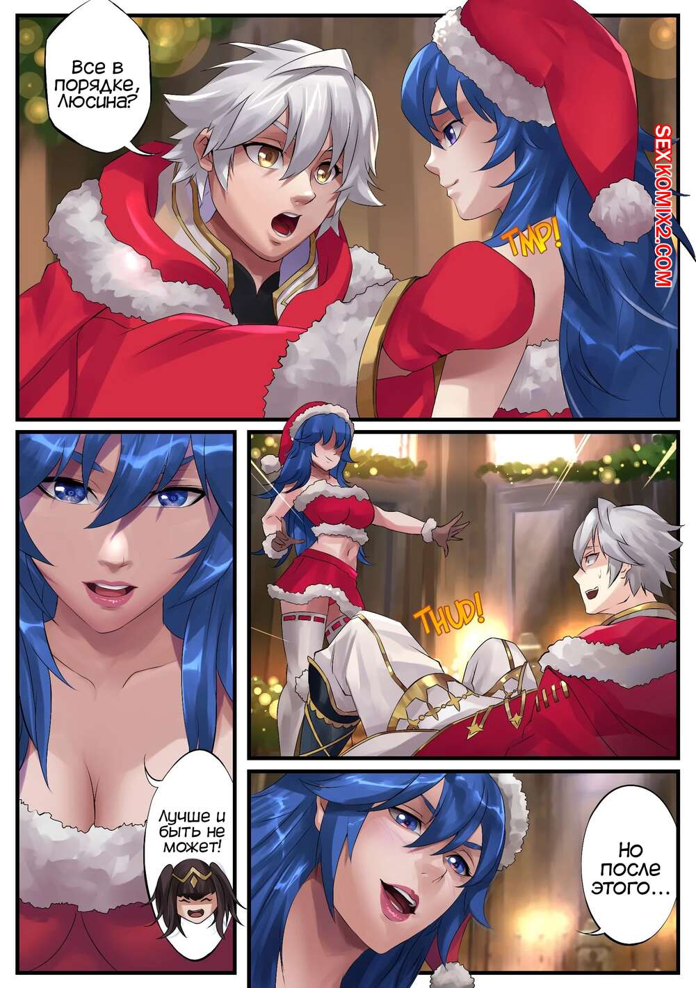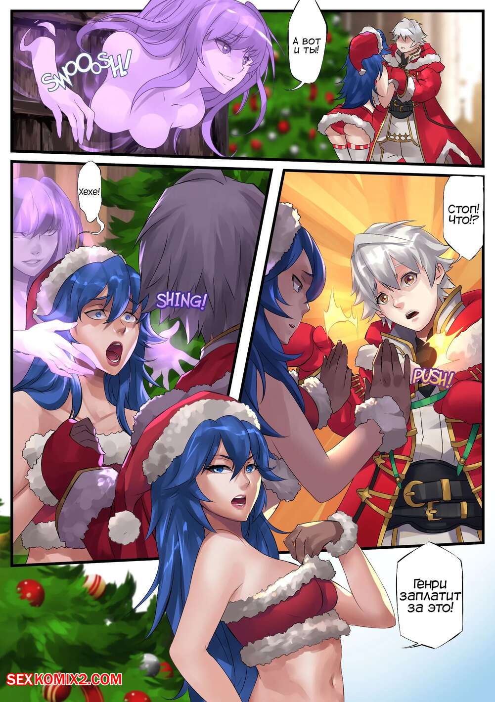 Порно комикс Рождественский обмен. XMas Swap. Fire Emblem. TSFSingularity Горячая сисястая красотка брюнетка хотела повеселиться с парнем, который ей нравится, но у него уже есть девушка. Она вселилась в ее тело и стала сосать большой хуй парня, после чего дала ему себя выебать.