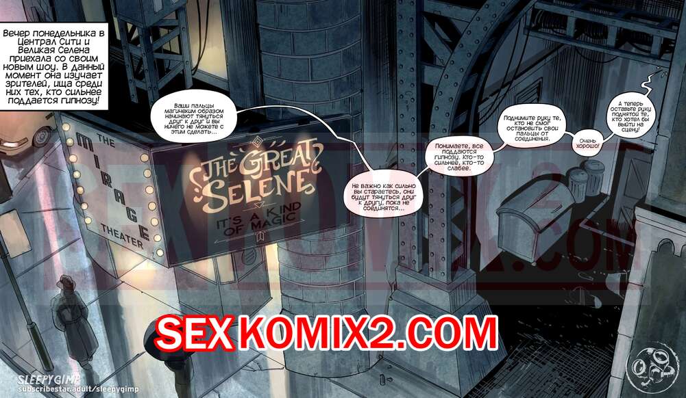 Порно комикс Своего рода Магия. A Kind of Magic. Sleepy Gimp Горячая сисястая брюнетка волшебница собрала полный зал зрителей на своем шоу. Она вызвала двух молодых красоток, чтобы погрузить их в полный транс и заставить их делать все, что она захочет.