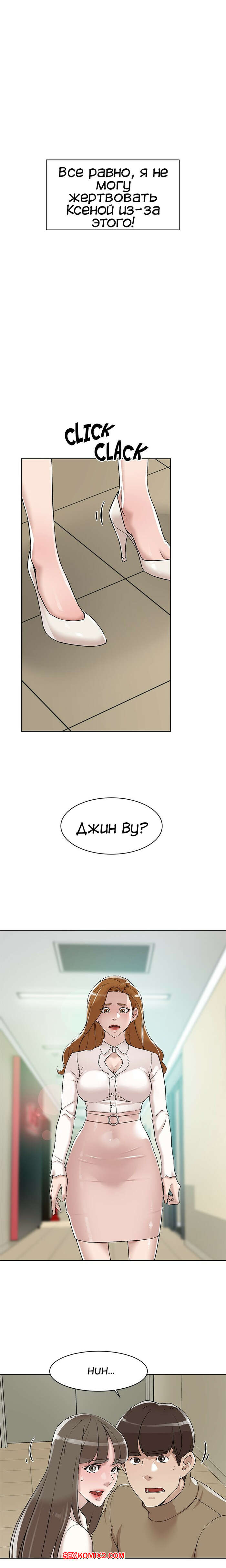 Порно комикс Её 4 размер. Часть 121. Her 4 Incher Парнишка пошел искать свою подругу, которая была закрыта в рабочей комнате с боссом. Он продолжал до нее домогаться и звать с ним ебаться, угрожая главному герою.
