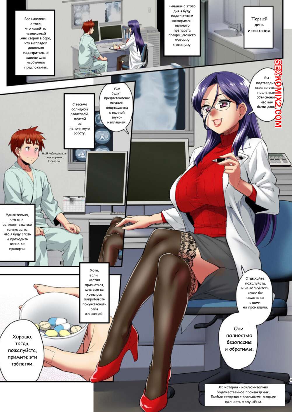 Порно комикс With My Futanari Doctor And The Embarrassment Of Having Turned Into a Girl Парень лежит в больнице и его тело превратилось в женское. Его докторша с большим хуем решила показать ему удовольствие от женского тела и хорошенько его выебала, доставив и себе и ему огромное удовольствие.