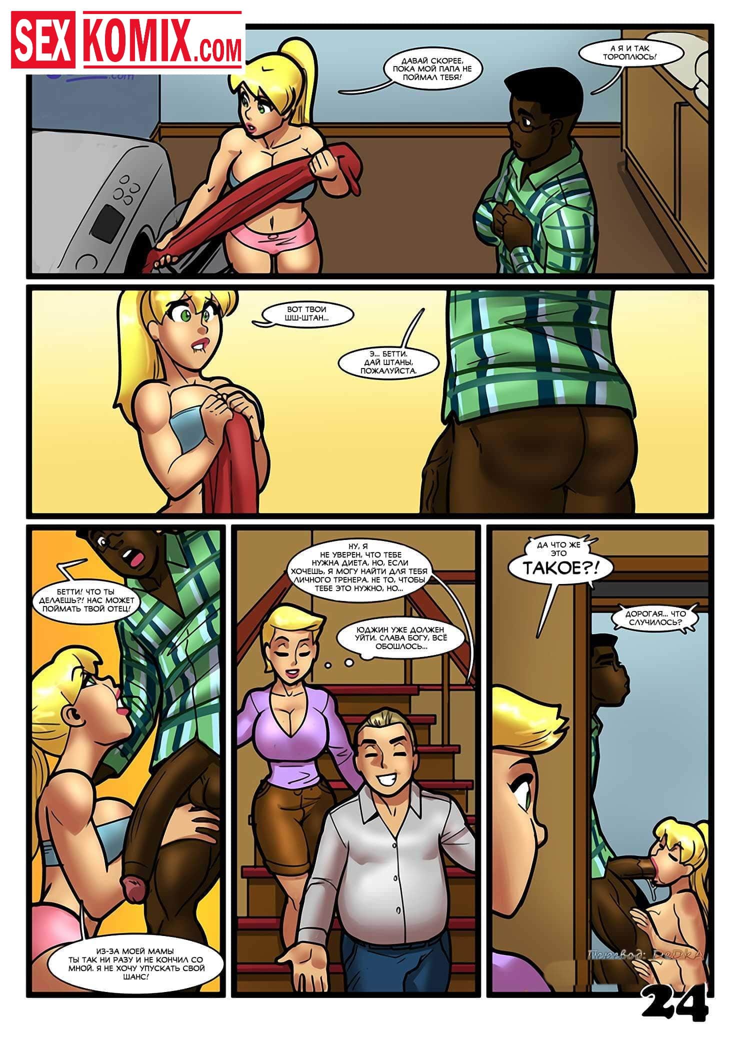 Порно комикс Тренировка Бетти и Элис. Чернокожий парень пришёл к своей подруге в общежитие, и они занялись горячим сексом. В момент оргазма зашла соседка девушки и увидела его огромный член. Когда парень пошёл принять душ после секса, соседка пришла к нему и соблазнила, девушка хотела тоже попробовать его член в своей горящей киске.