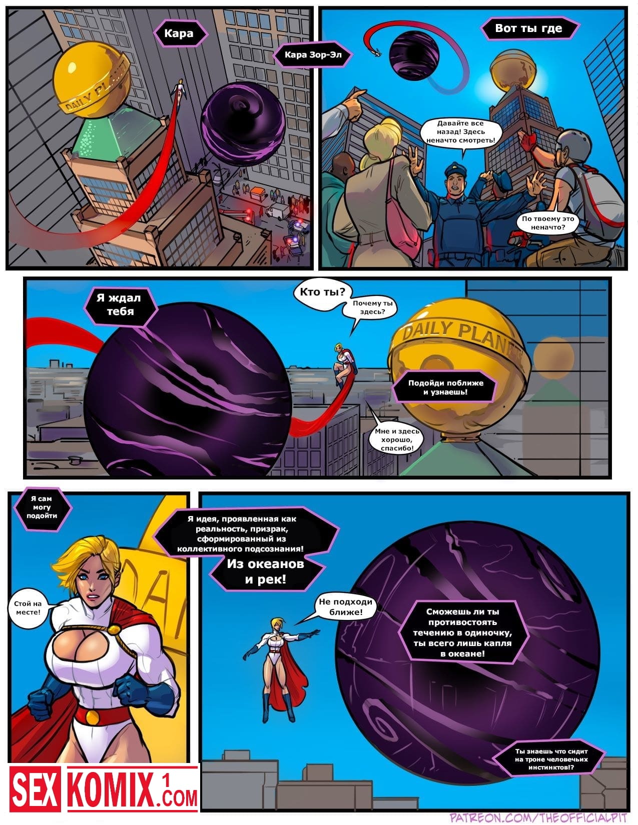 Порно комикс Повэр-герл против Дарксайда. Девушка супергерой выполняет грязную работу для своего здоровяка хозяина. После очередного задания она вернулась за наградой, ведь её ждал просто не реальных размеров член. Здоровяк дал красотке его пососать, но он не помещался у неё в горле. Он засовывал его всё глубже в её глотку. После страстно минета он напихал ей между сиськами. Они как два огромных шарика прыгали туда сюда, а между ними член. Так происходило пока здоровяк не кончил.