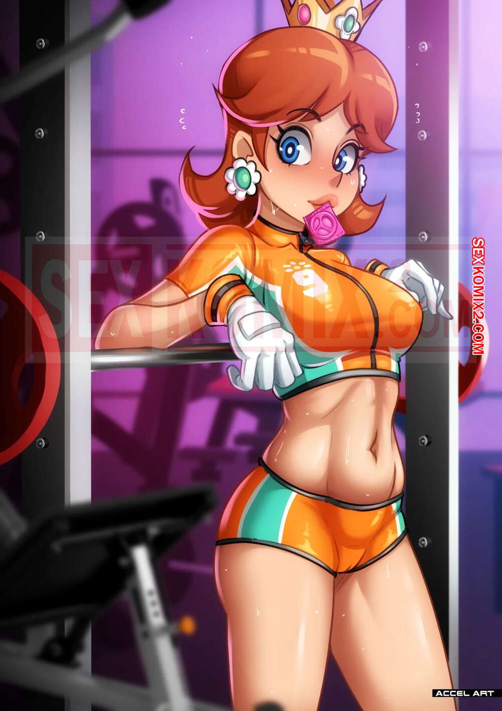 Порно комикс Вайфу. Принцесса Дейзи. Waifu Cast Princess Daisy. Accel Art Горячая сисястая красотка брюнетка занималась в спортзале и обратилась за помощью к парню. Он с радостью согласился ее помочь, после чего дал ей отсосать свой большой хуй и хорошенько ее выебал.