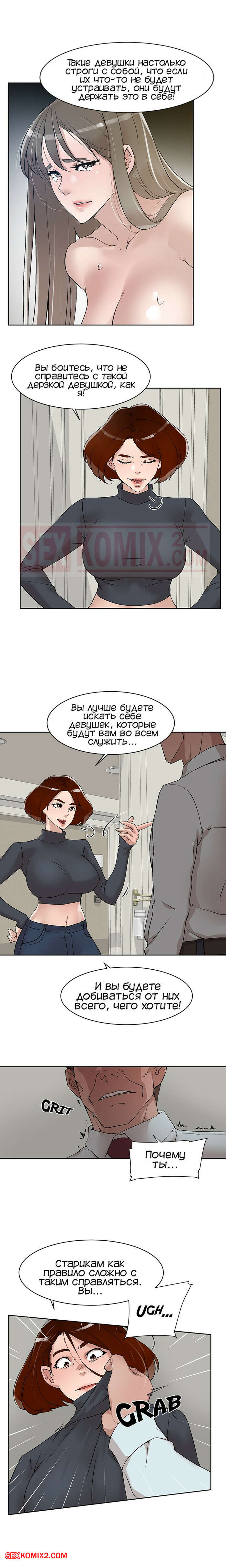 Порно комикс Её 4 размер. Часть 124. Her 4 Incher Сисястая красотка брюнетка стала раздеваться перед мужиком. Она начала дразнить его своими словами, поэтому он уложил сучку на кровать и хорошенько ее выебал, получив огромное удовольствие.