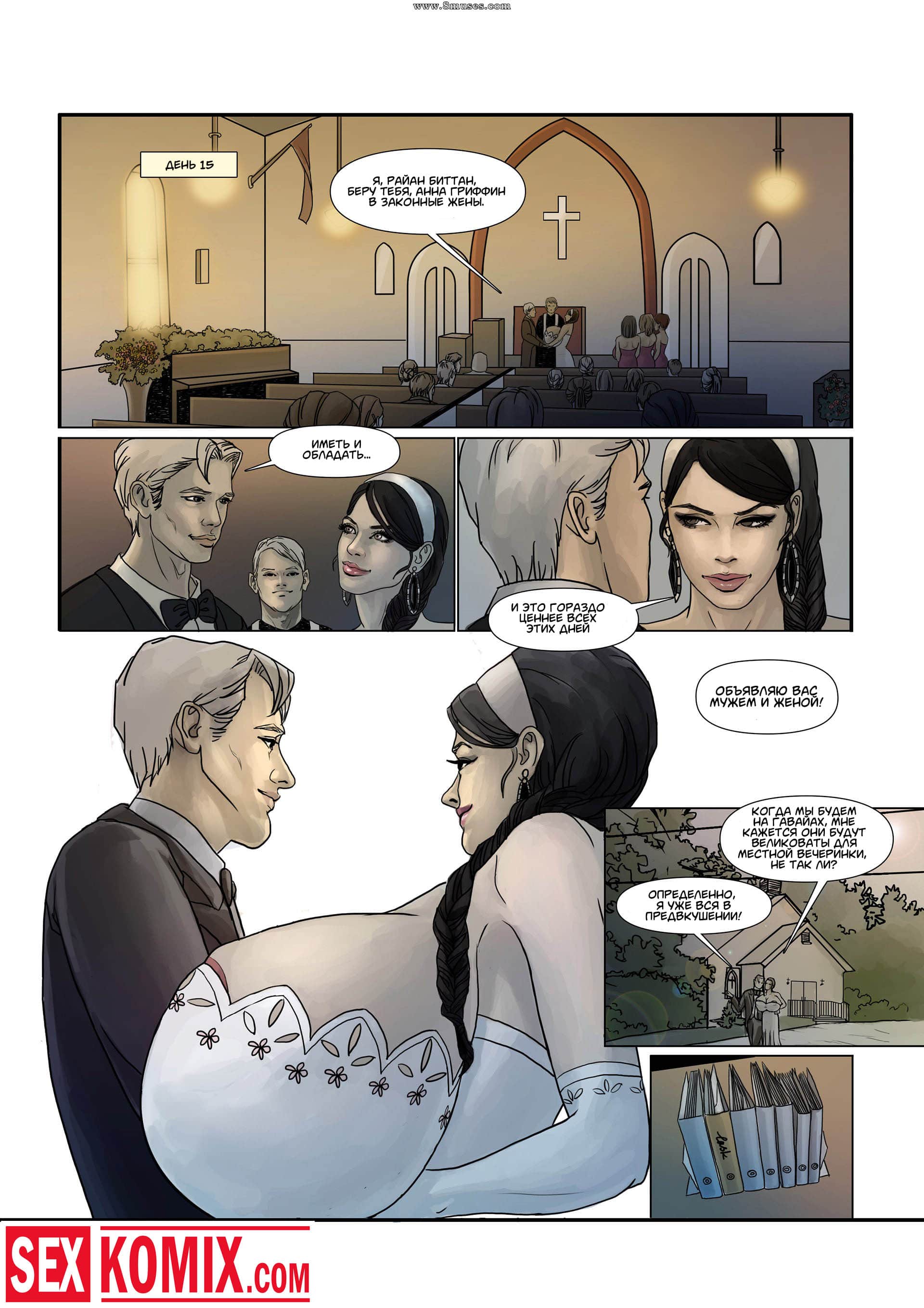 Порно комикс Иметь и обладать. Парень познакомился на курорте с очень сексуальной блондинкой и привез её к себе домой. После некоторого времени, она сигали свадьбу, и он начал замечать, что её грудь очень быстро растет. Уже после года отношений она увеличилась на 3 размера, и огромные сиськи продолжали увеличиваться.
