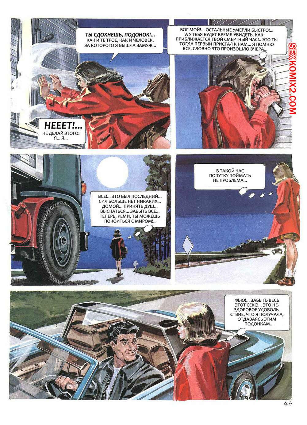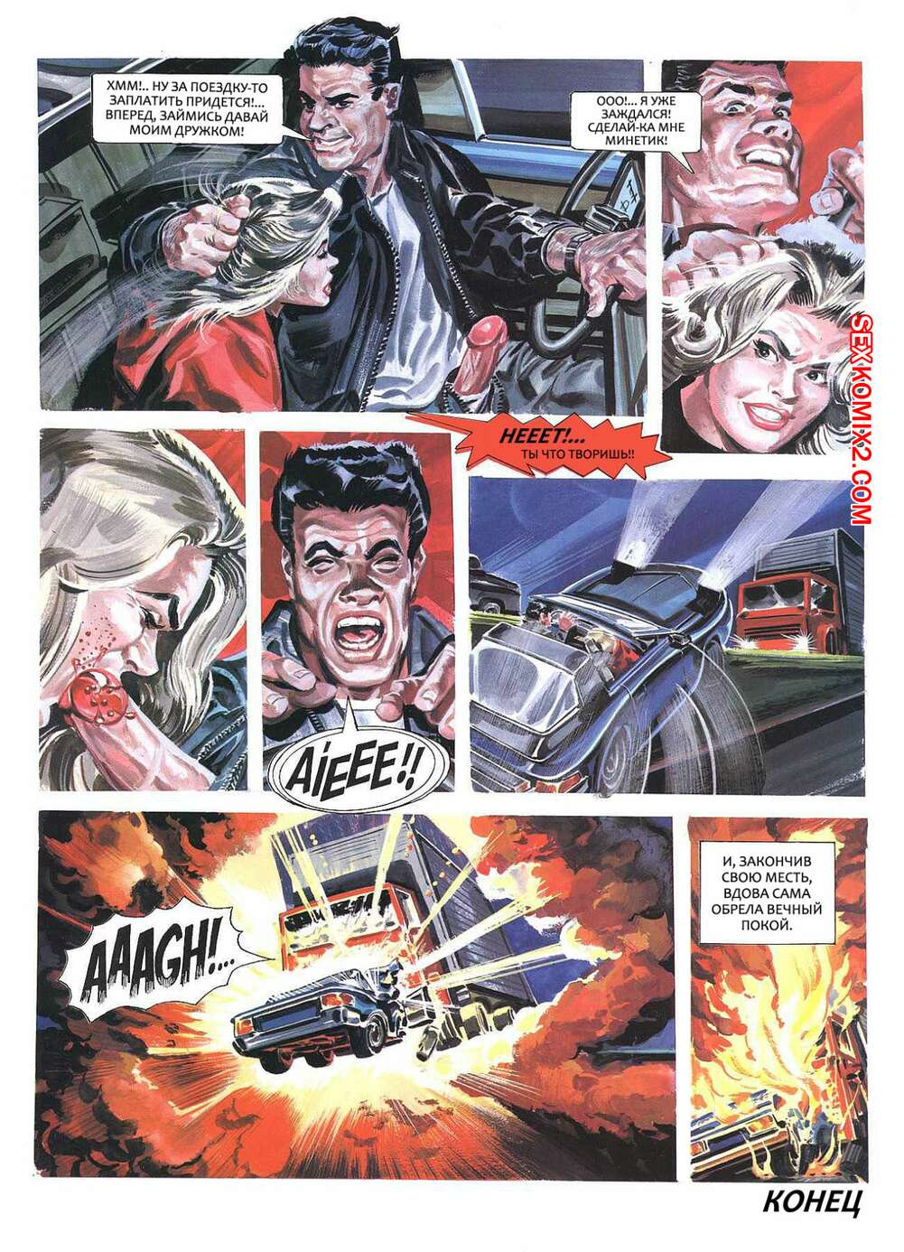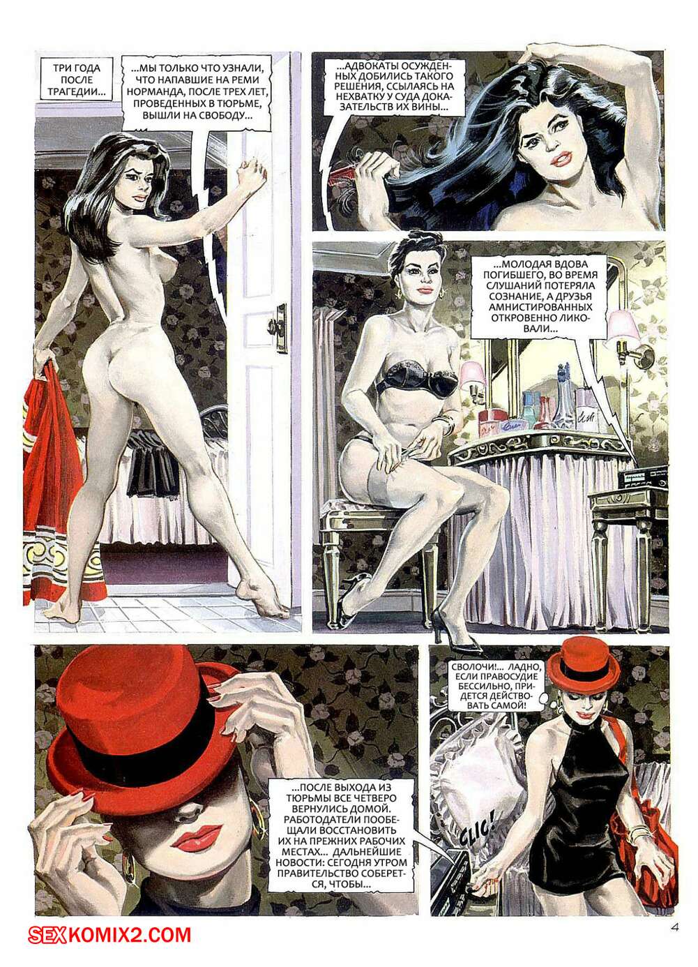 Порно комикс Вдова или женская месть за убийство Горячие сисястые красотки брюнетки встречаются с парнями, которые убили их мужей. Сучки соблазняют парней и отсасывают их большие хуи, а затем дают им себя трахать, после чего хорошенько их мучают.